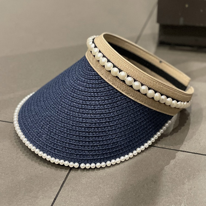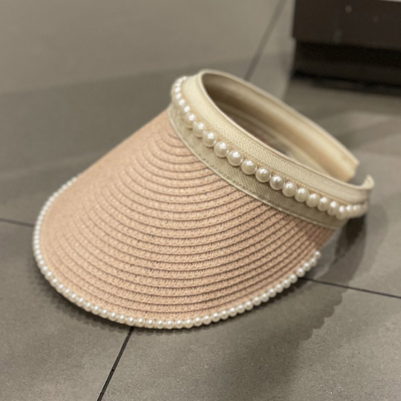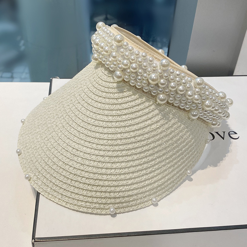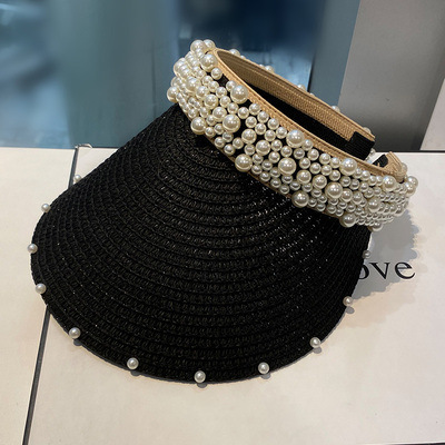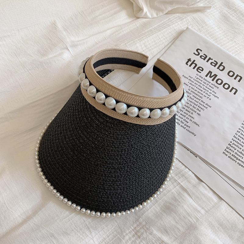草编珍珠空顶帽韩系简约户外出游女春夏潮时尚百搭遮阳防晒帽草帽