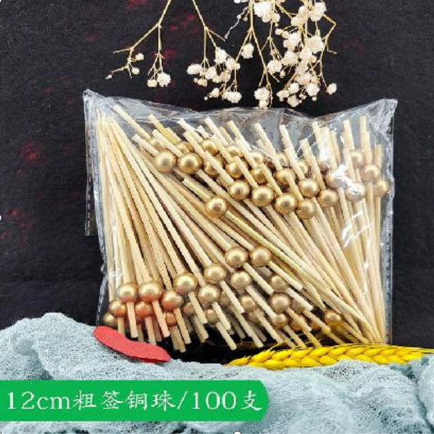 竹制水果签水果叉鸡尾酒一次性装饰竹签彩色创意串签烘培蛋糕串签