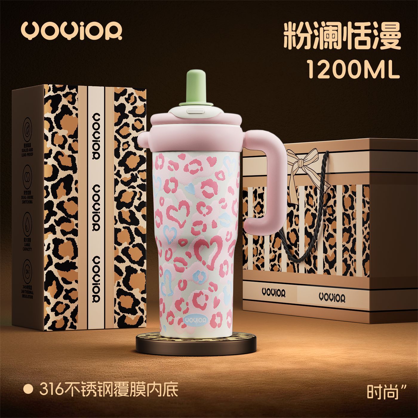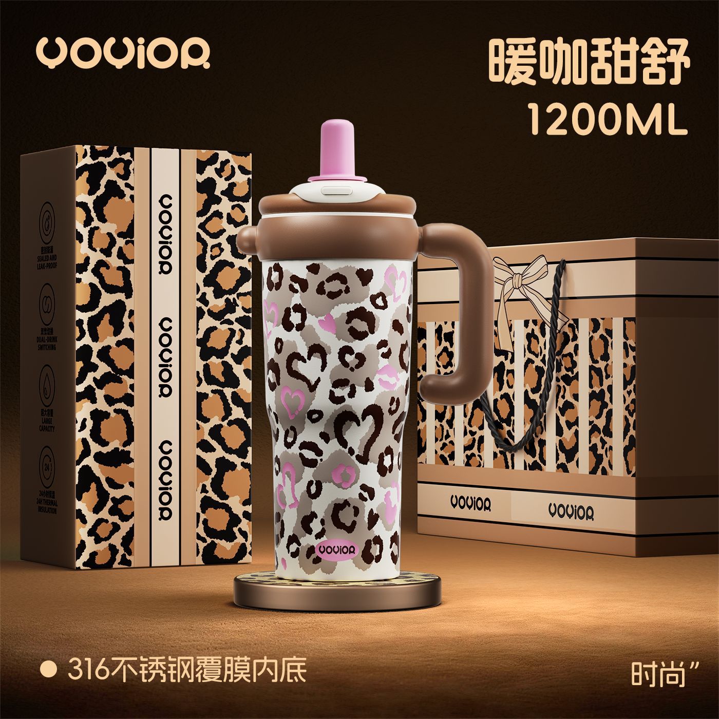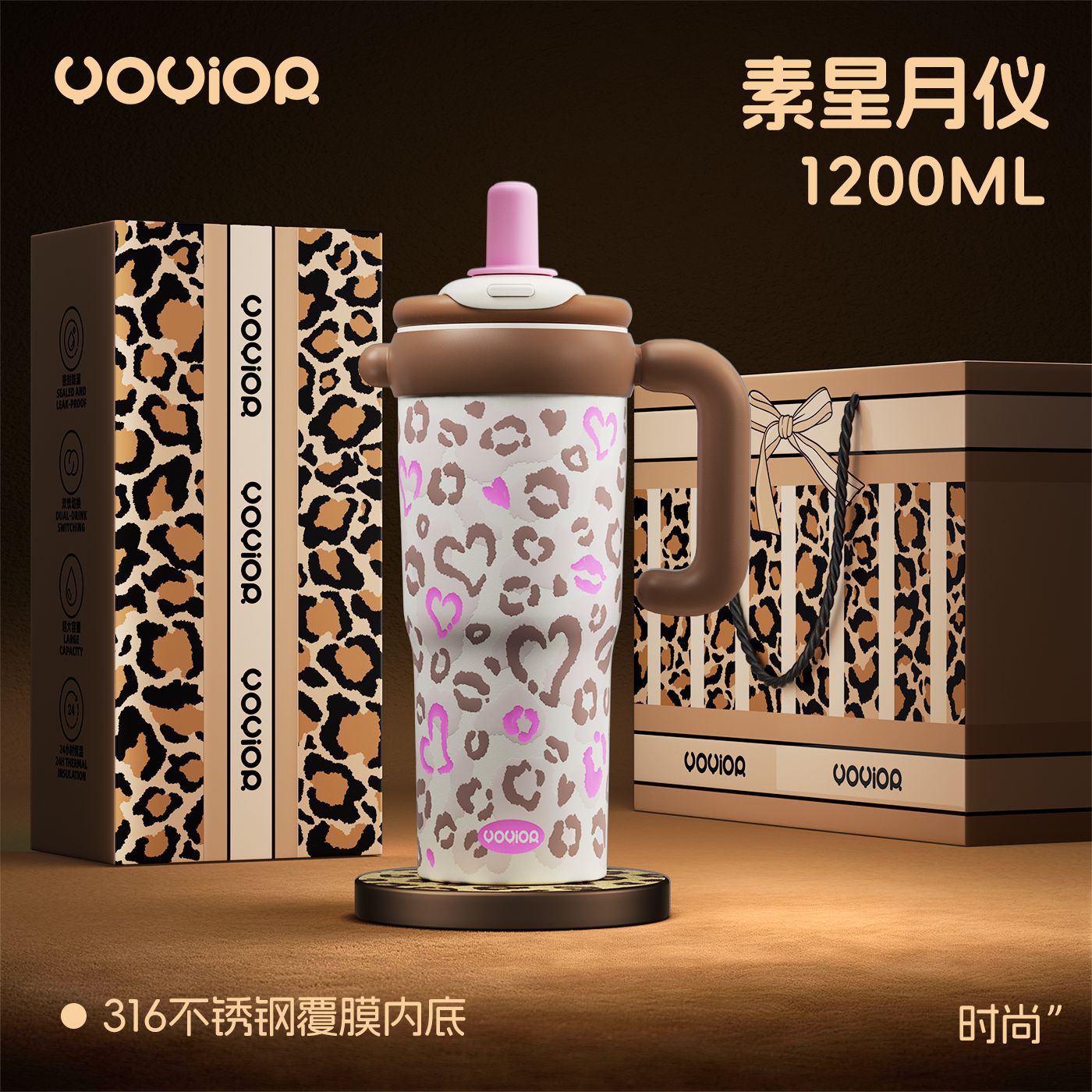 2026新款陶瓷保温杯女士家用物品豹纹吸管水杯子生日礼物