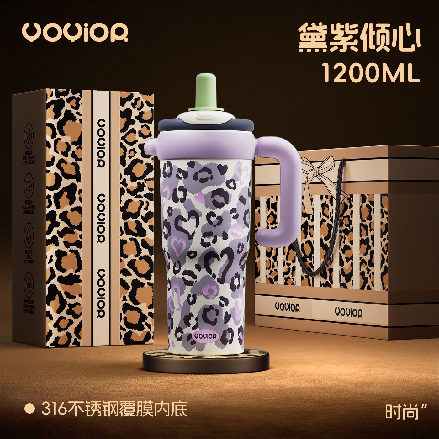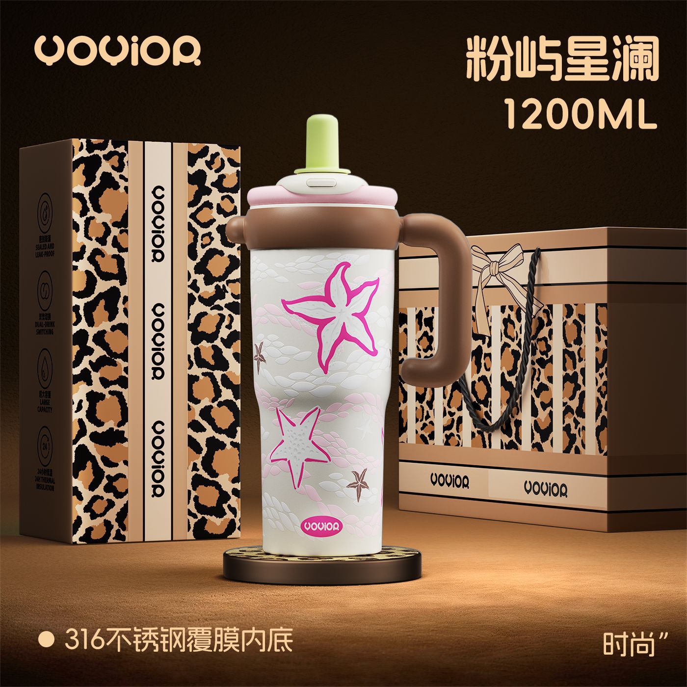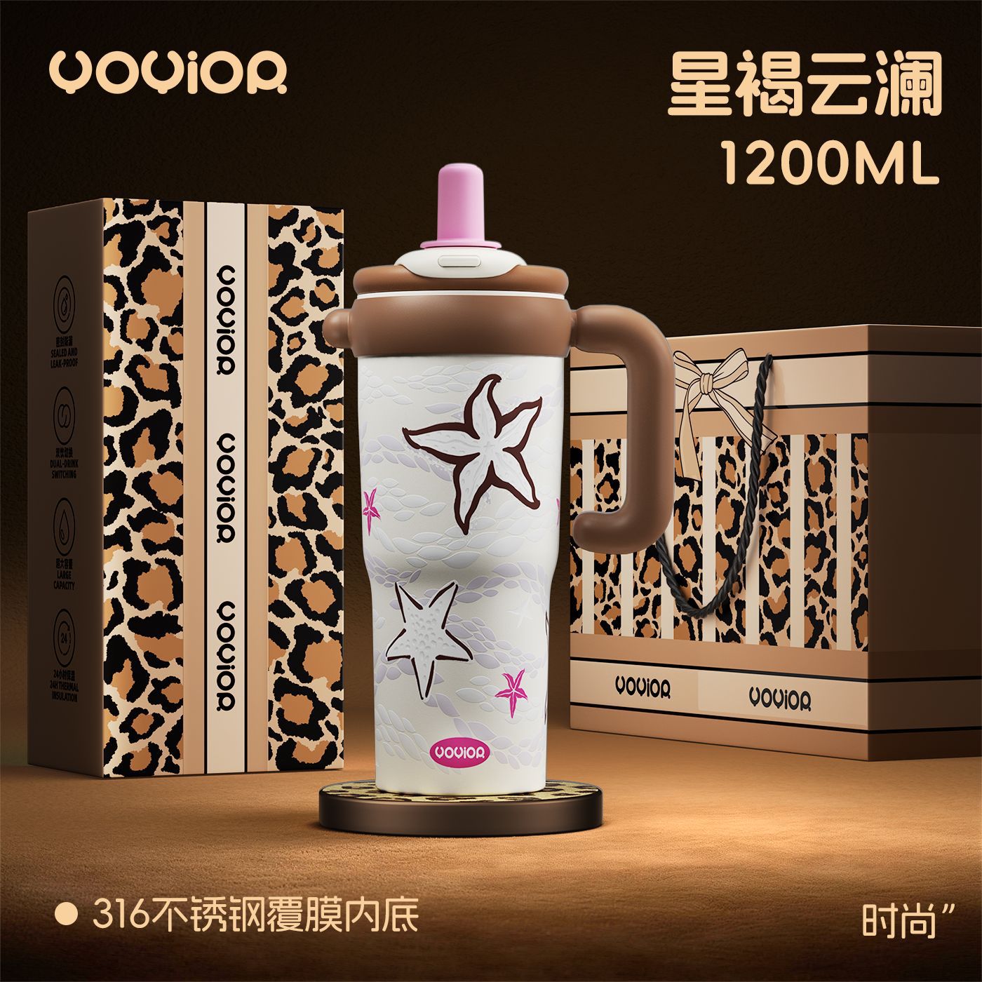 2026新款陶瓷保温杯女士家用物品豹纹吸管水杯子生日礼物