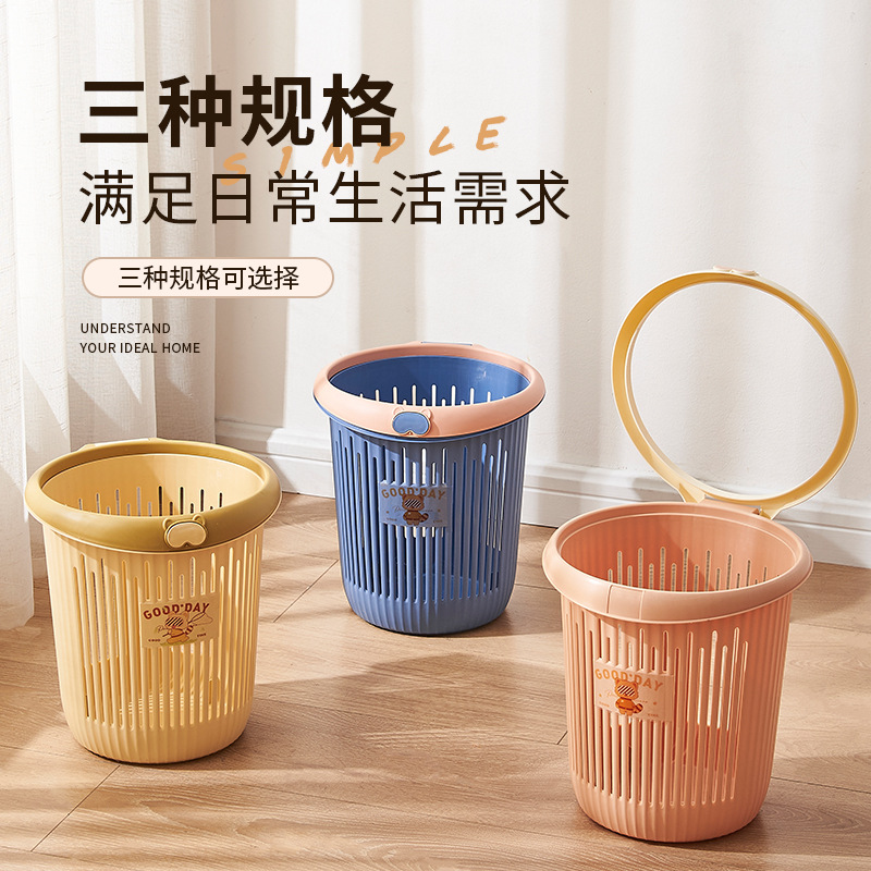 镂空压圈垃圾桶家用高颜值镂空客厅卧室翻盖可爱卡通大容量纸篓