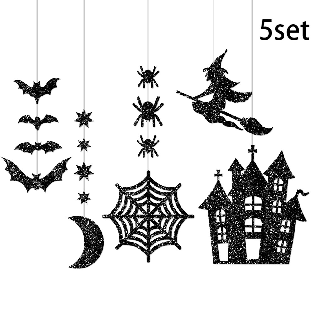 跨境新款万圣节装饰恐怖城堡悬挂饰巫婆扫帚道挂条具聚会派对用品