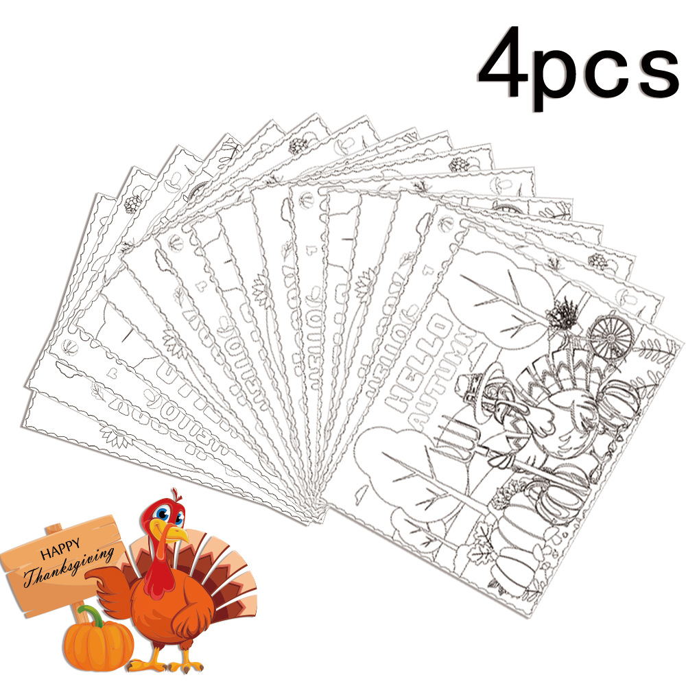 跨境新款秋季感恩节装饰手绘火鸡DIY纸质桌面餐杯盘子垫派对用品