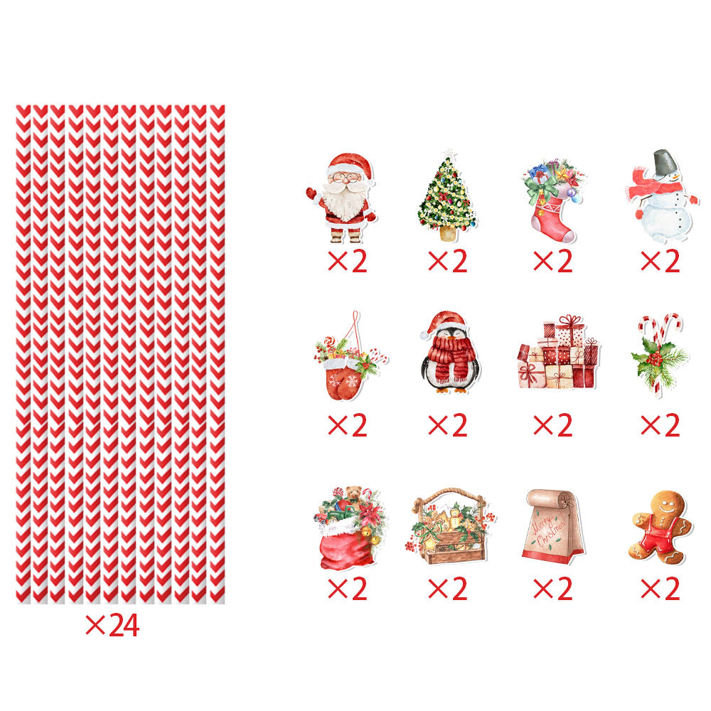 跨境新款圣诞节装饰道具圣诞老人树礼物一次性纸质吸管派对用品