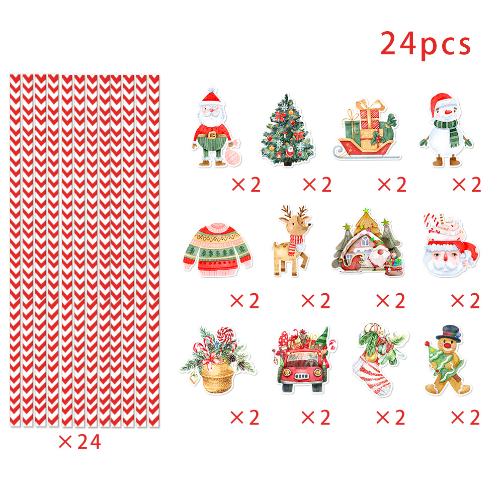 跨境新款圣诞节装饰圣诞树老人雪人礼物水杯一次性纸质吸管派对用