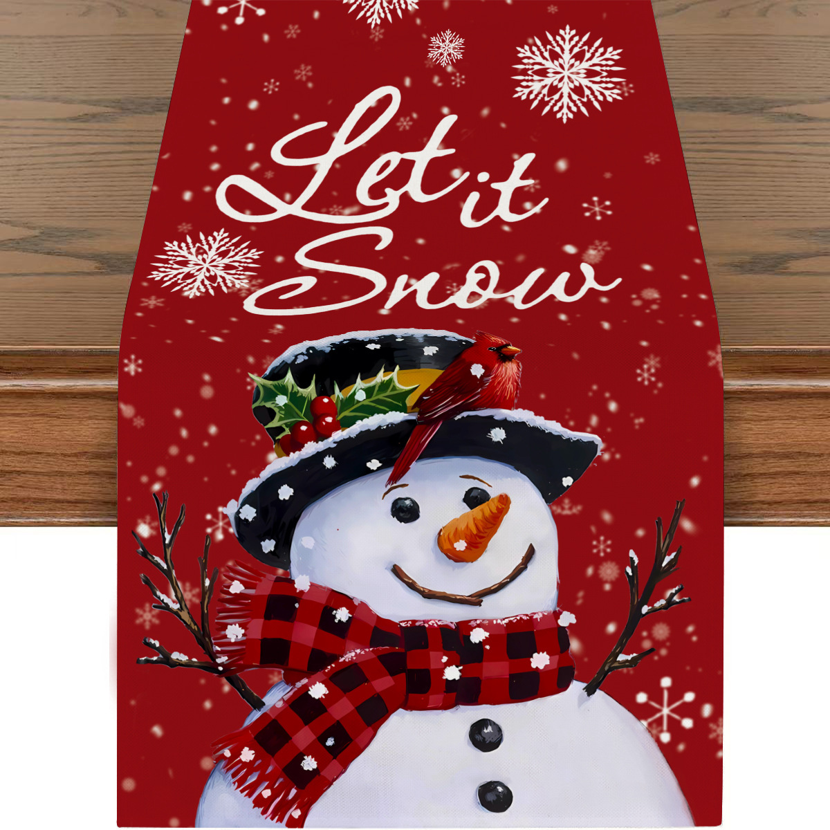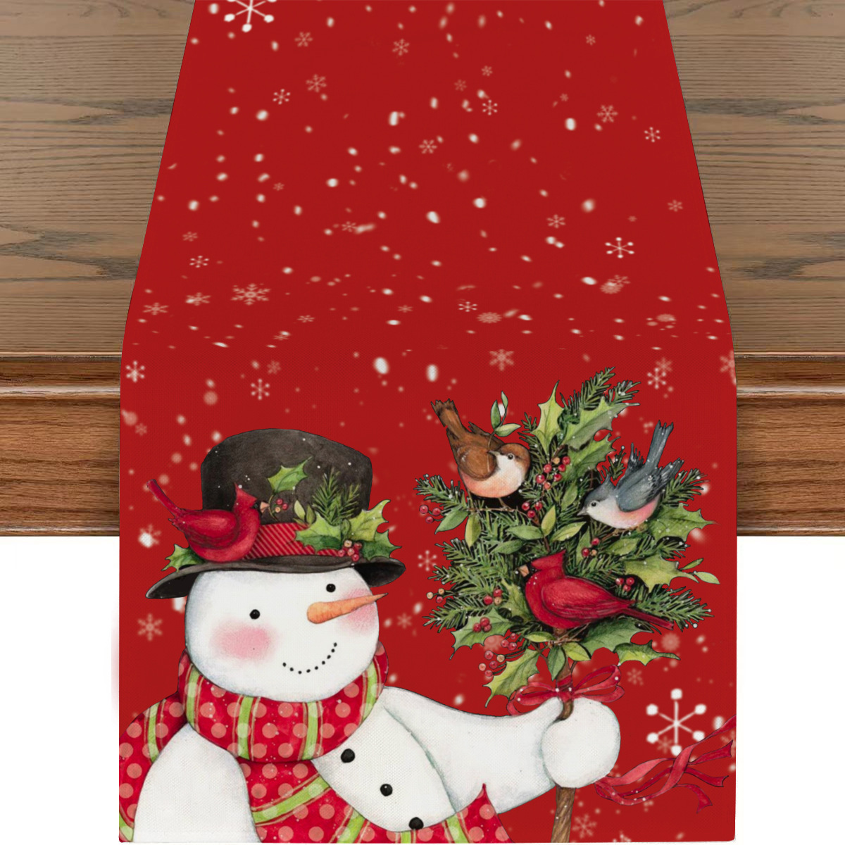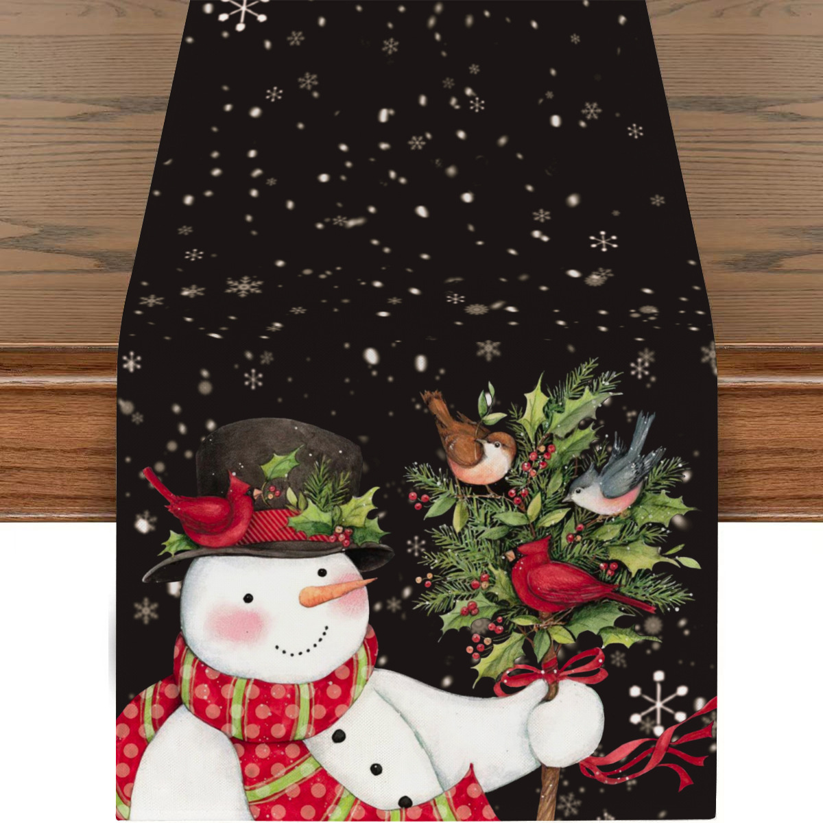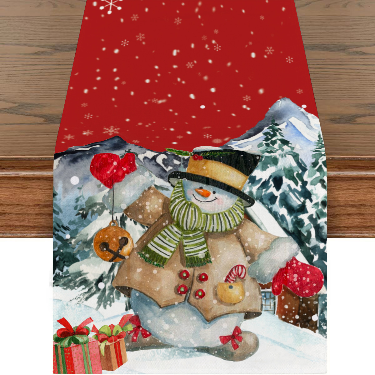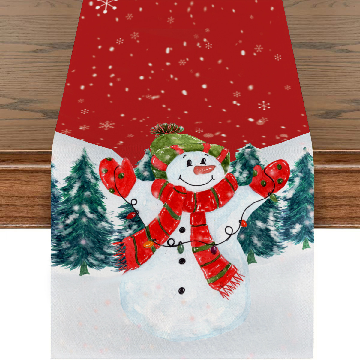跨境爆款圣诞节亚麻印花桌旗西餐厅布置桌布北欧餐桌圣诞雪人桌旗