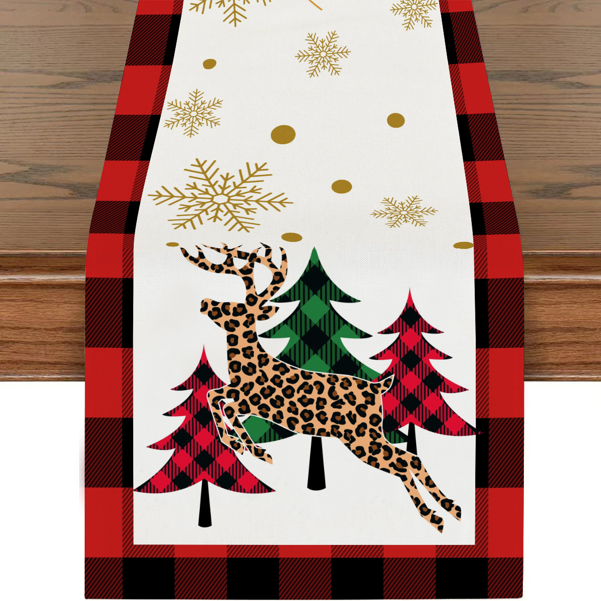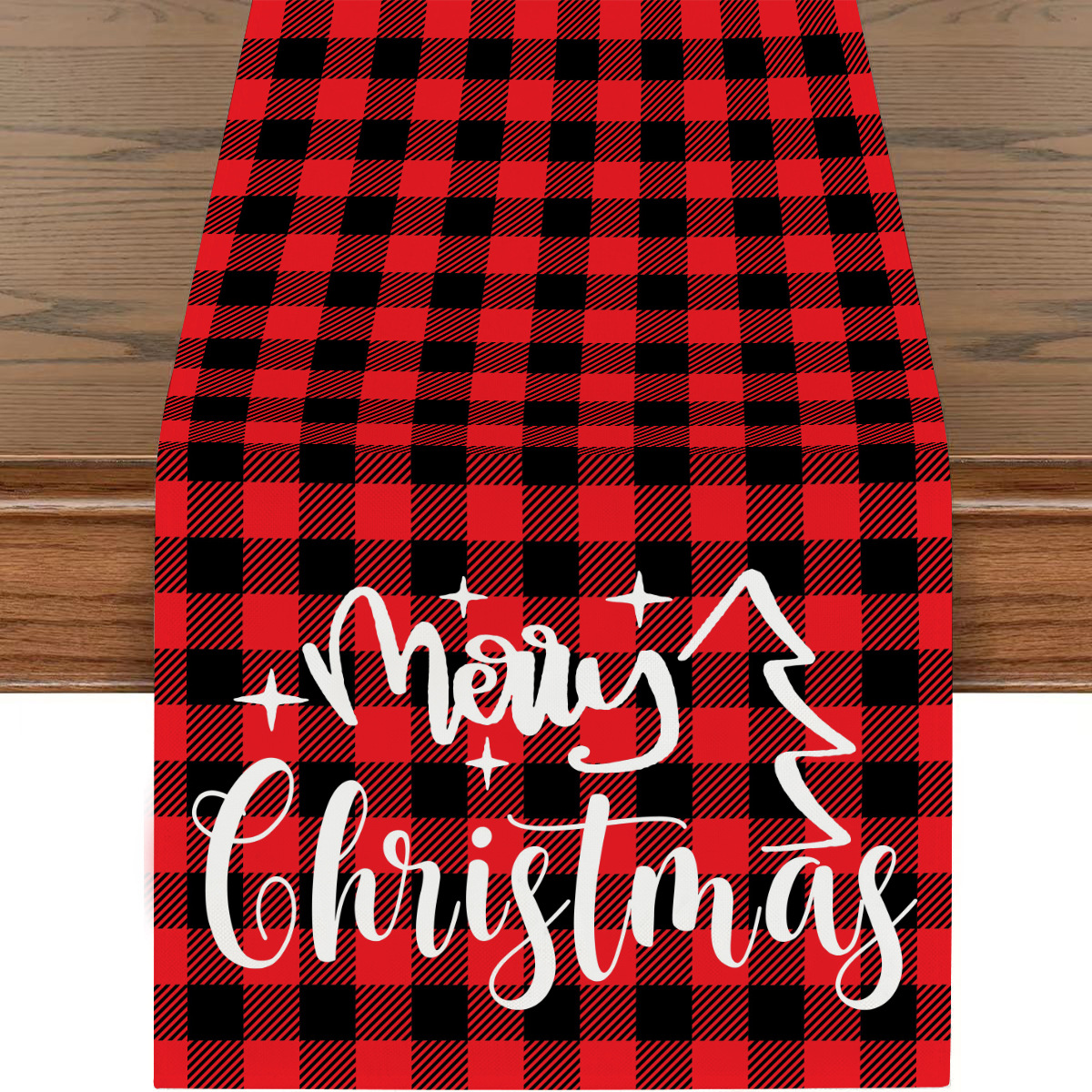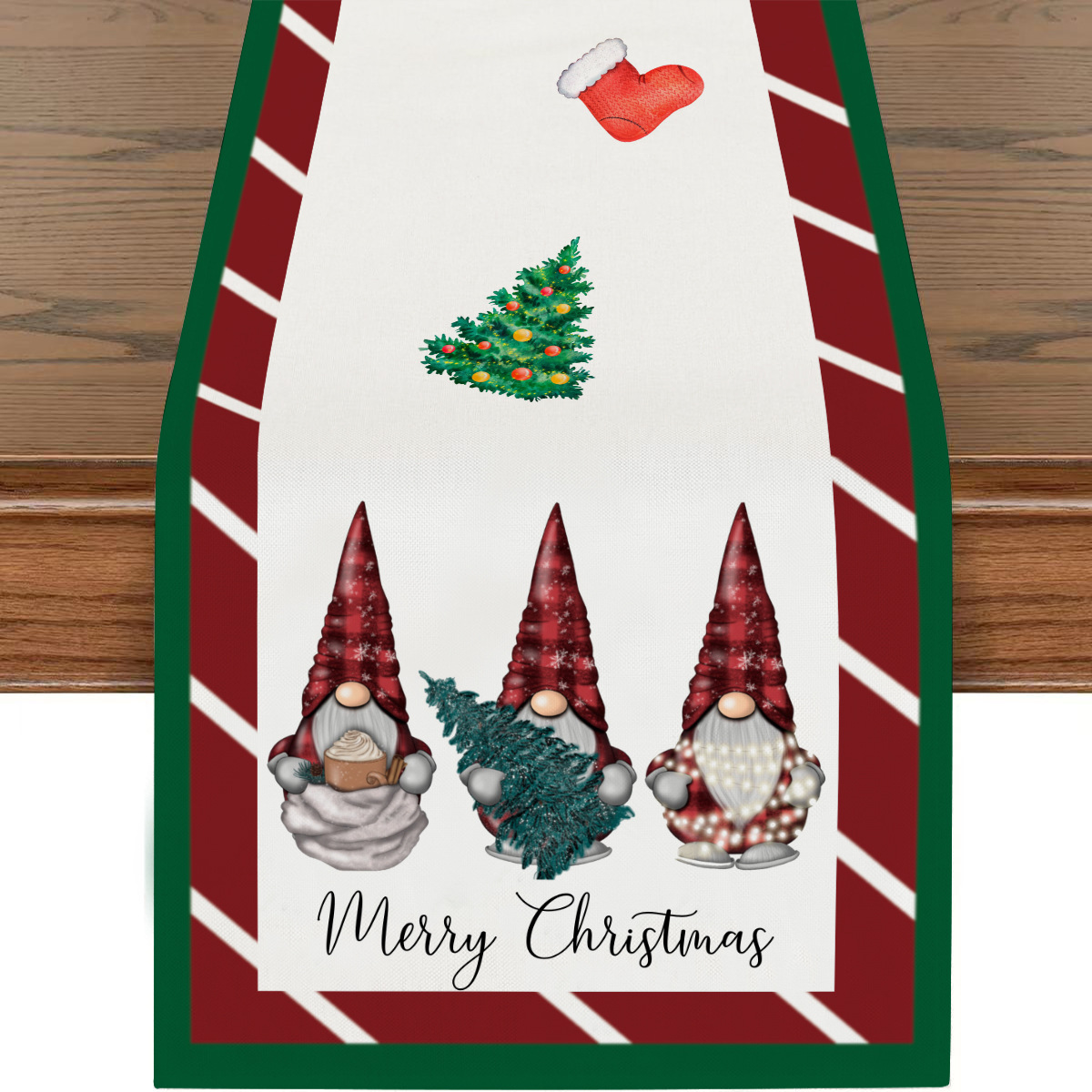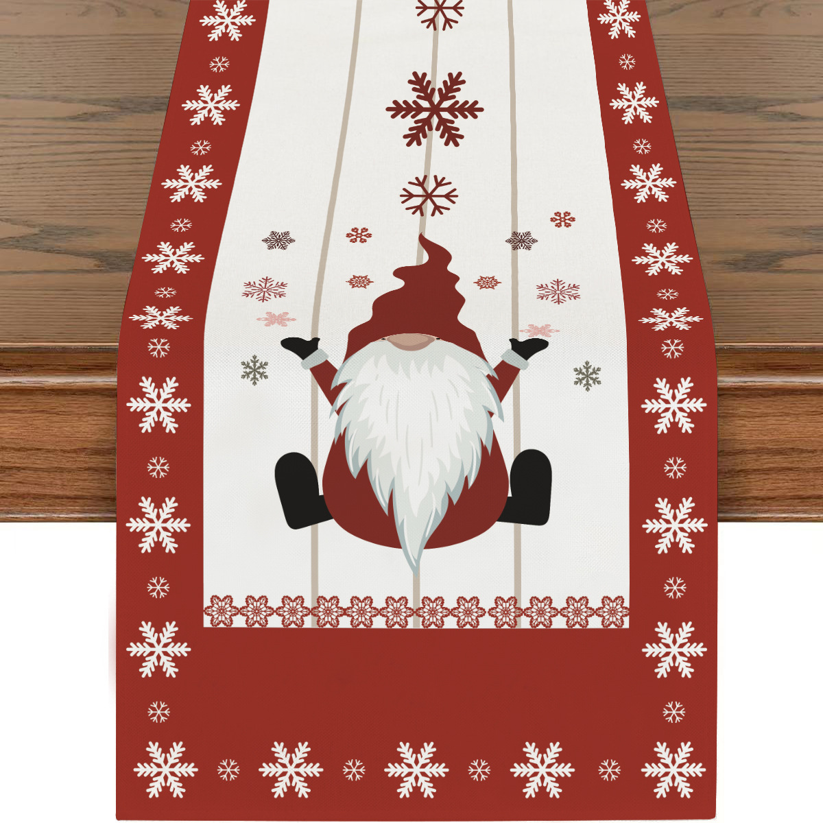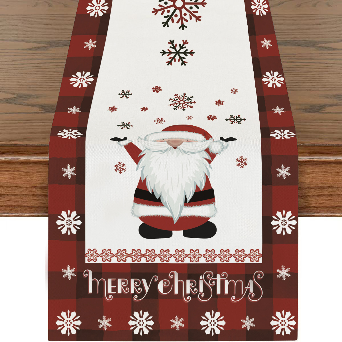 跨境爆款圣诞节亚麻印花桌旗西餐厅布置桌布北欧餐桌圣诞雪人桌旗