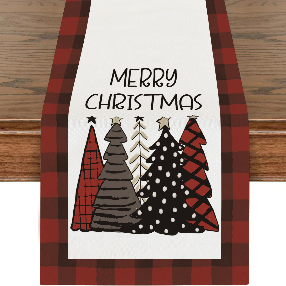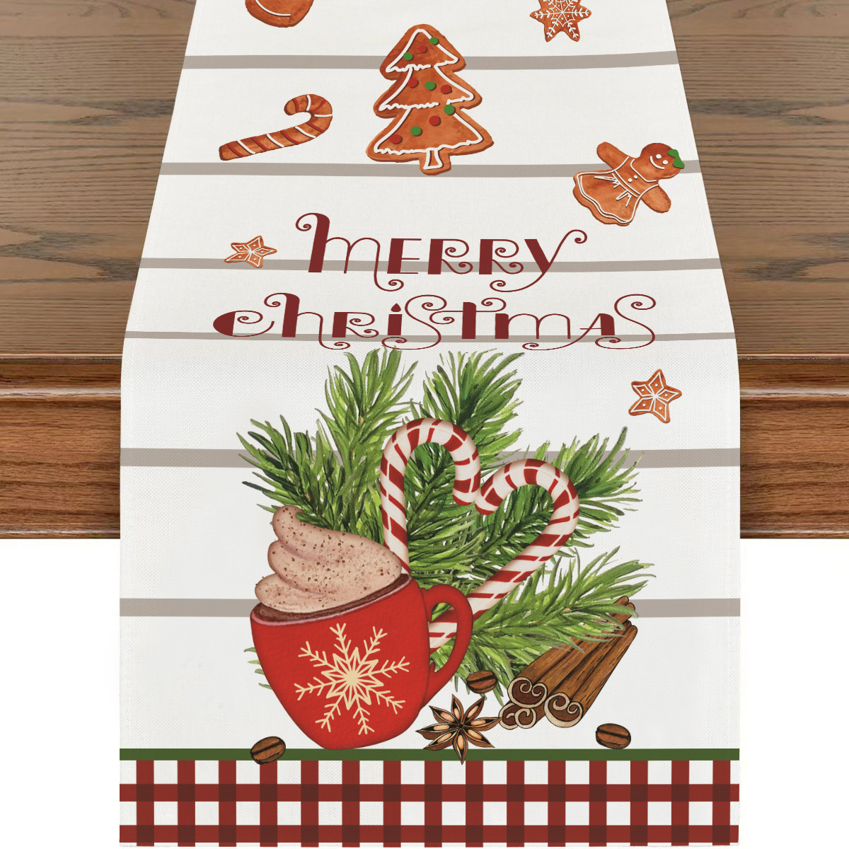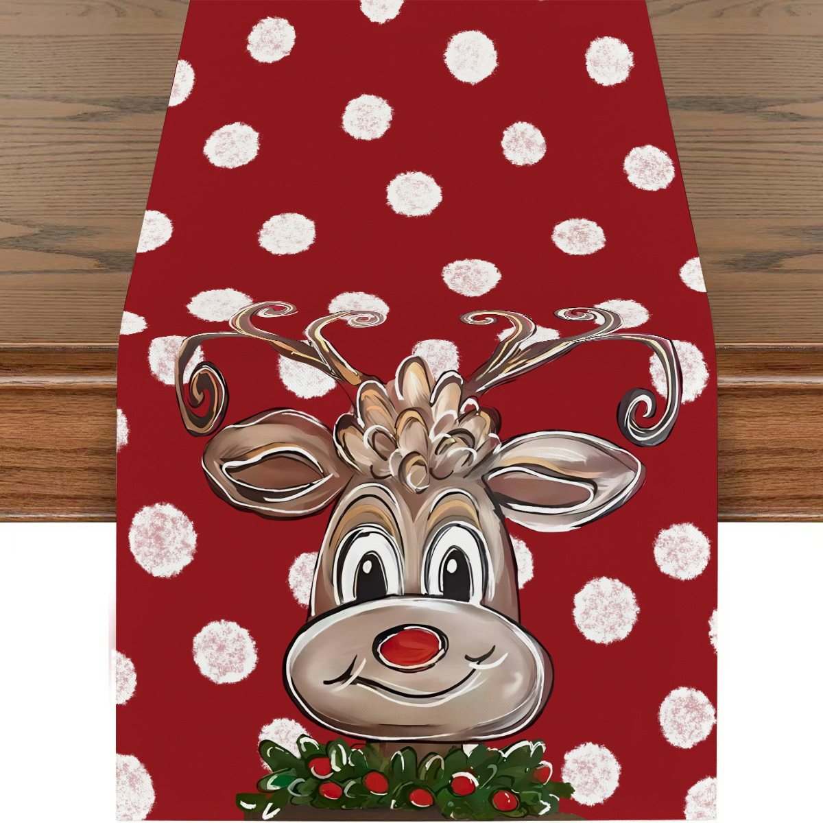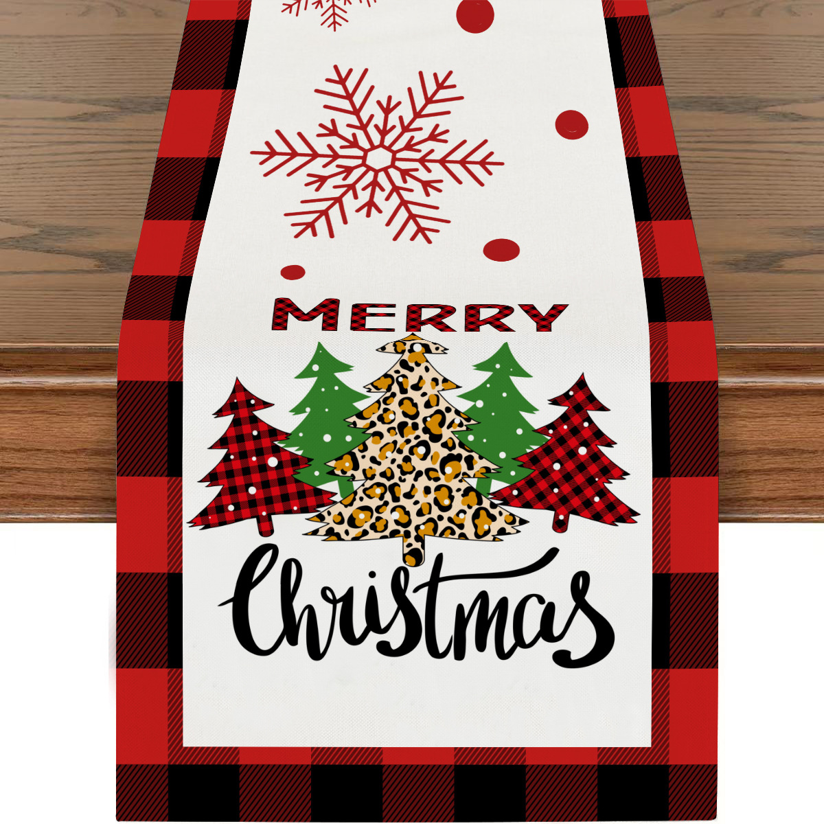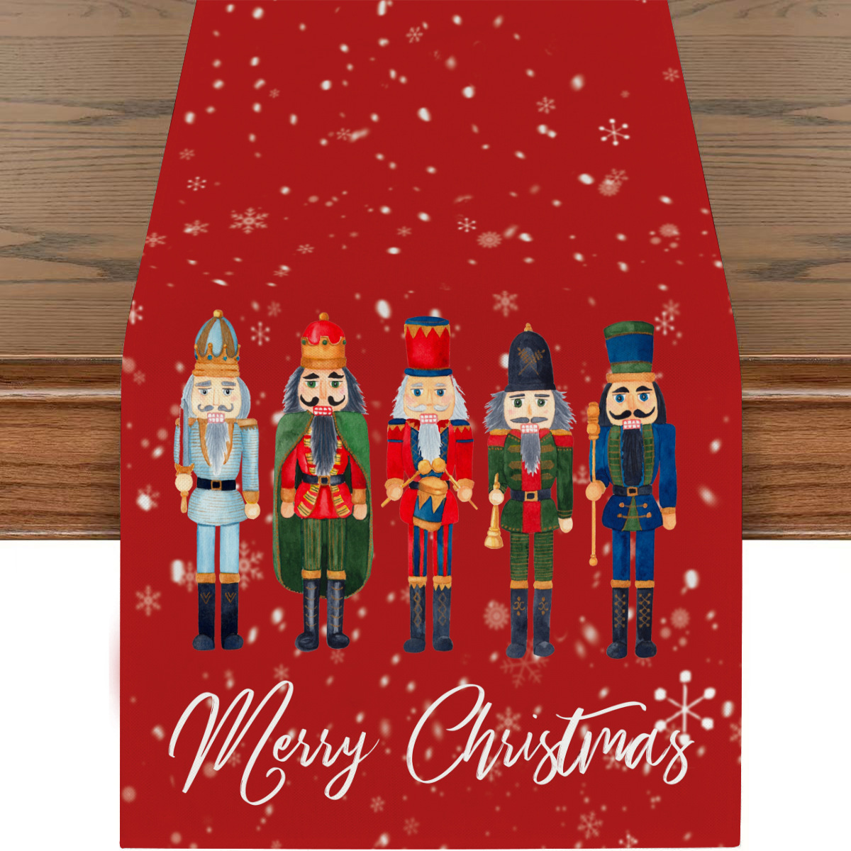 跨境爆款圣诞节亚麻印花桌旗西餐厅布置桌布北欧餐桌圣诞雪人桌旗