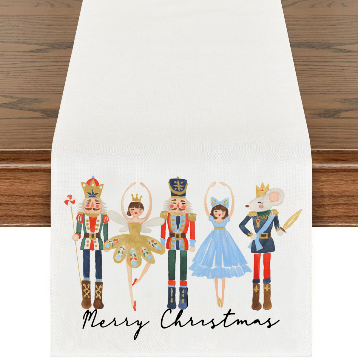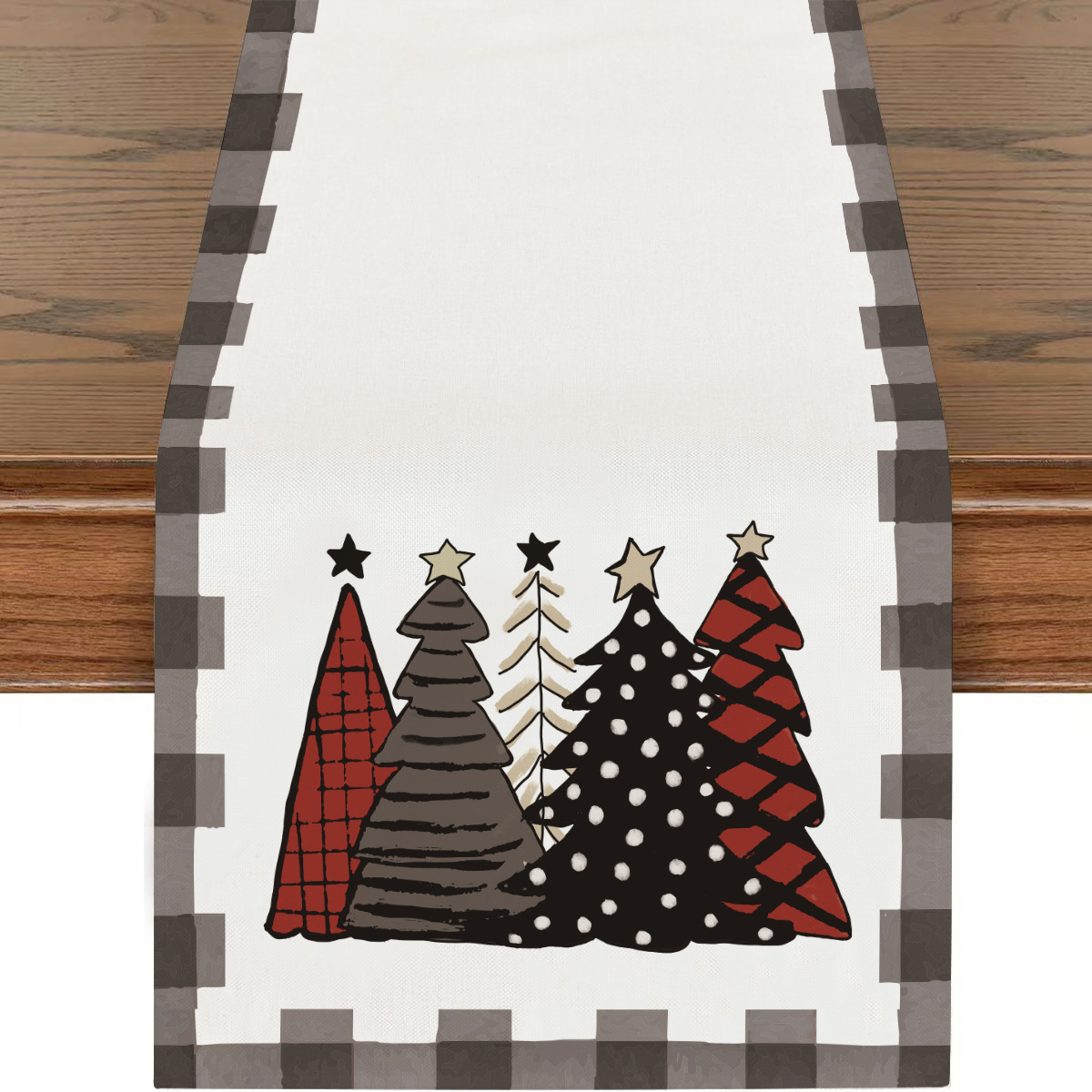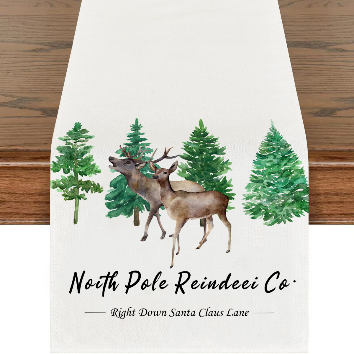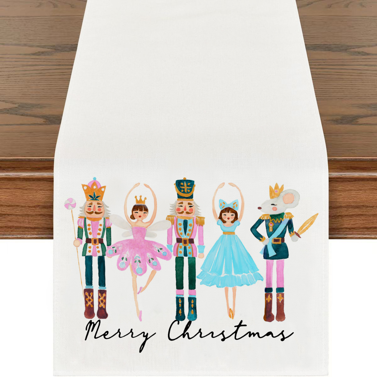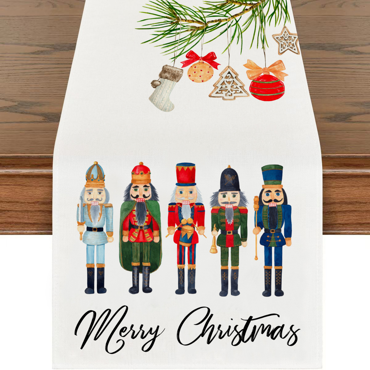 跨境爆款圣诞节亚麻印花桌旗西餐厅布置桌布北欧餐桌圣诞雪人桌旗