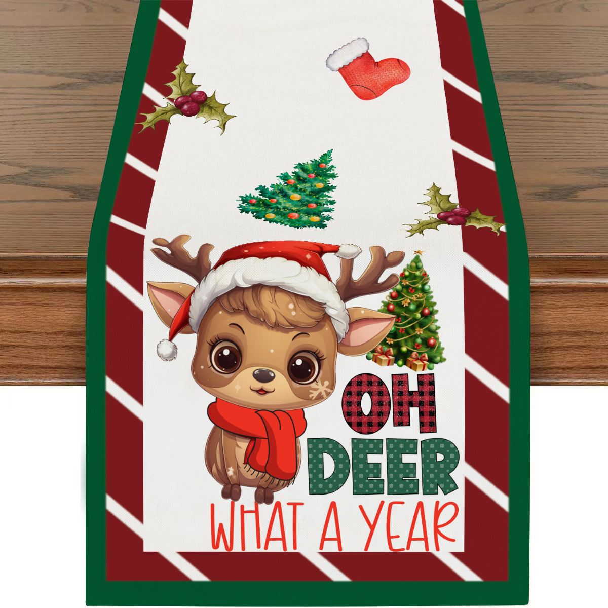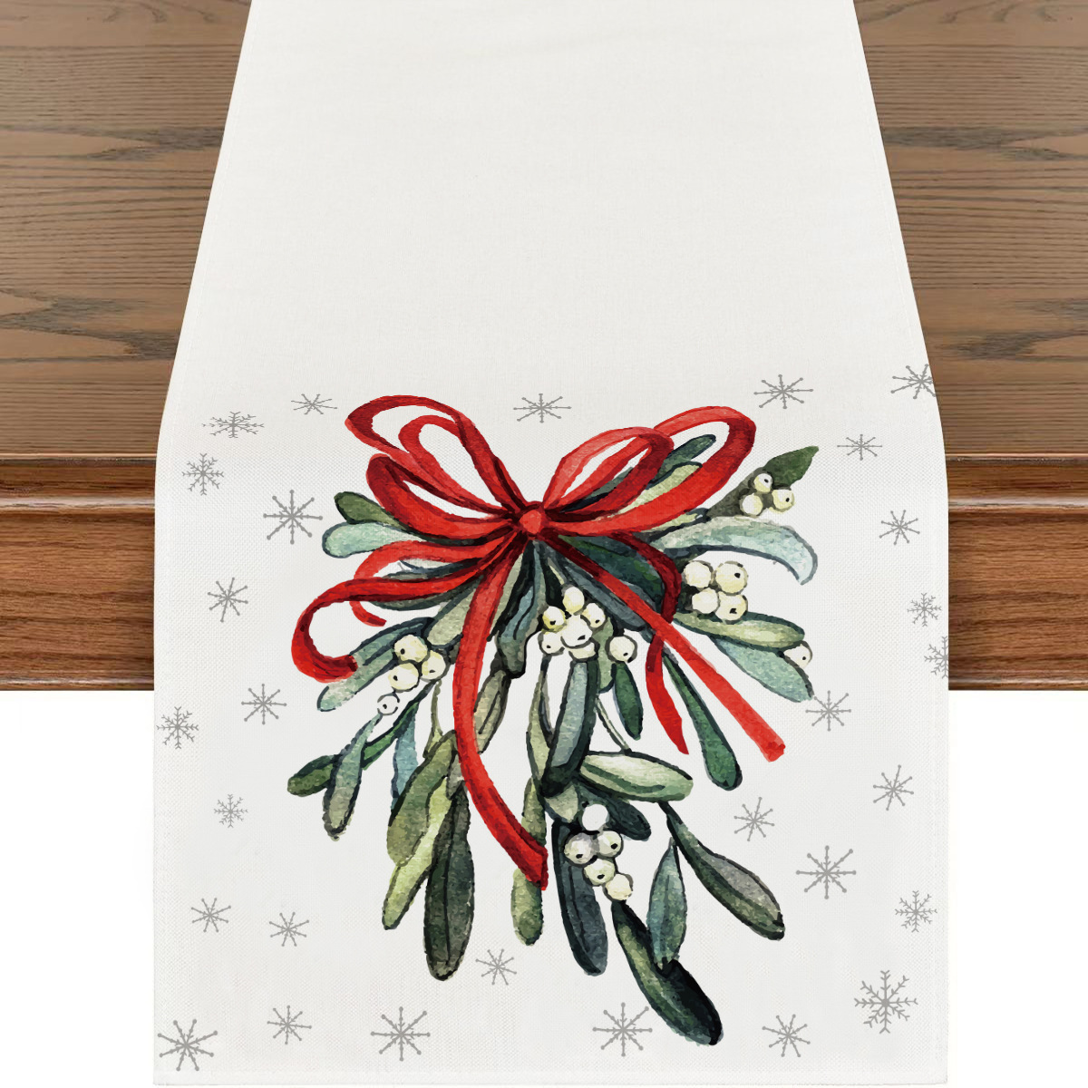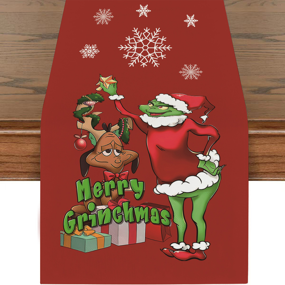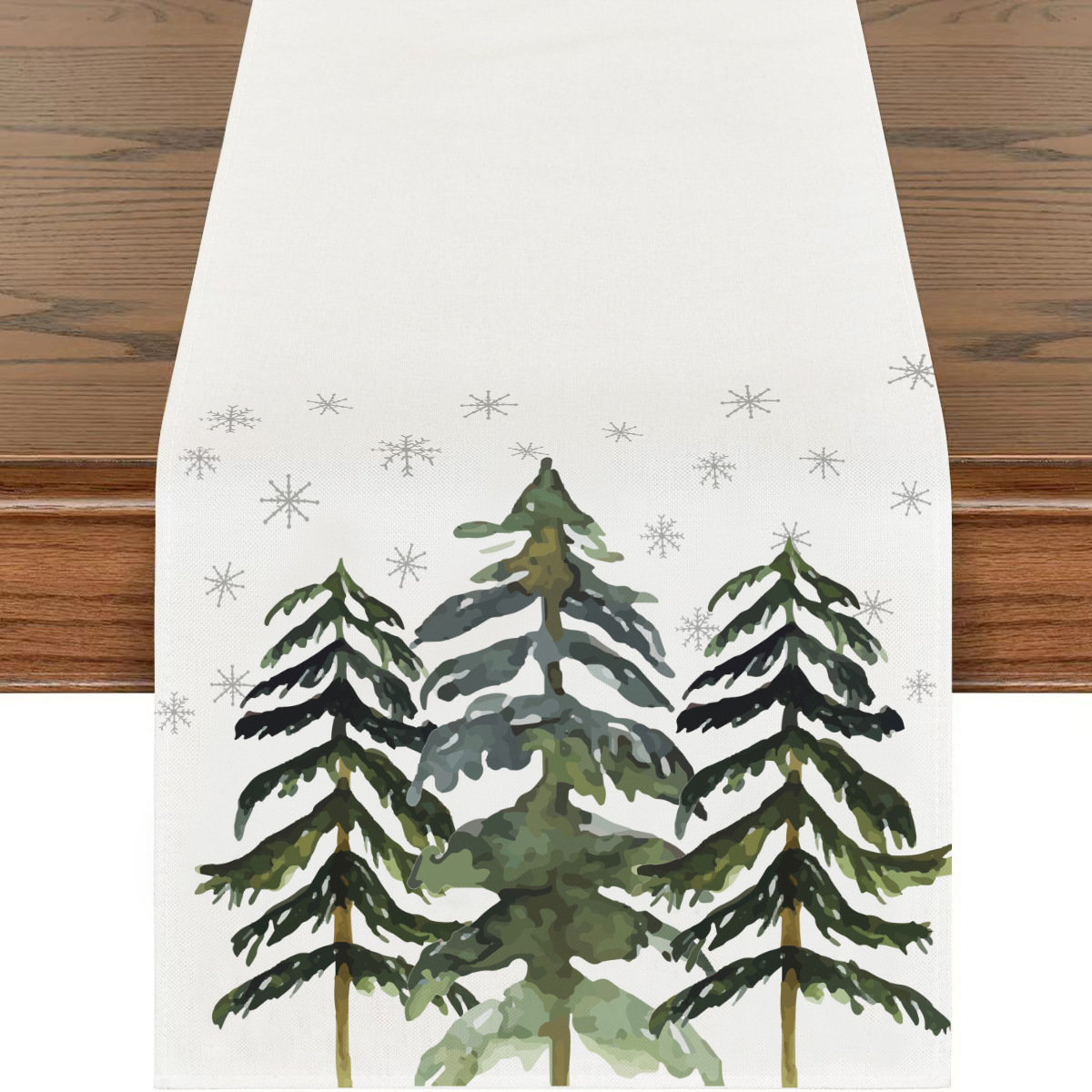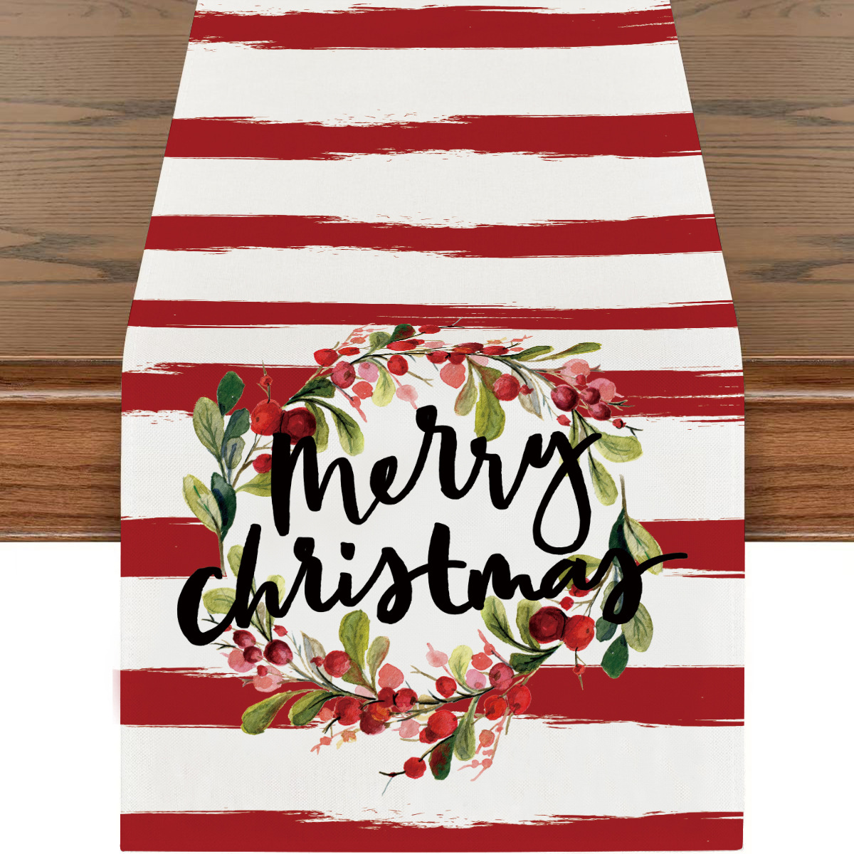 跨境爆款圣诞节亚麻印花桌旗西餐厅布置桌布北欧餐桌圣诞雪人桌旗