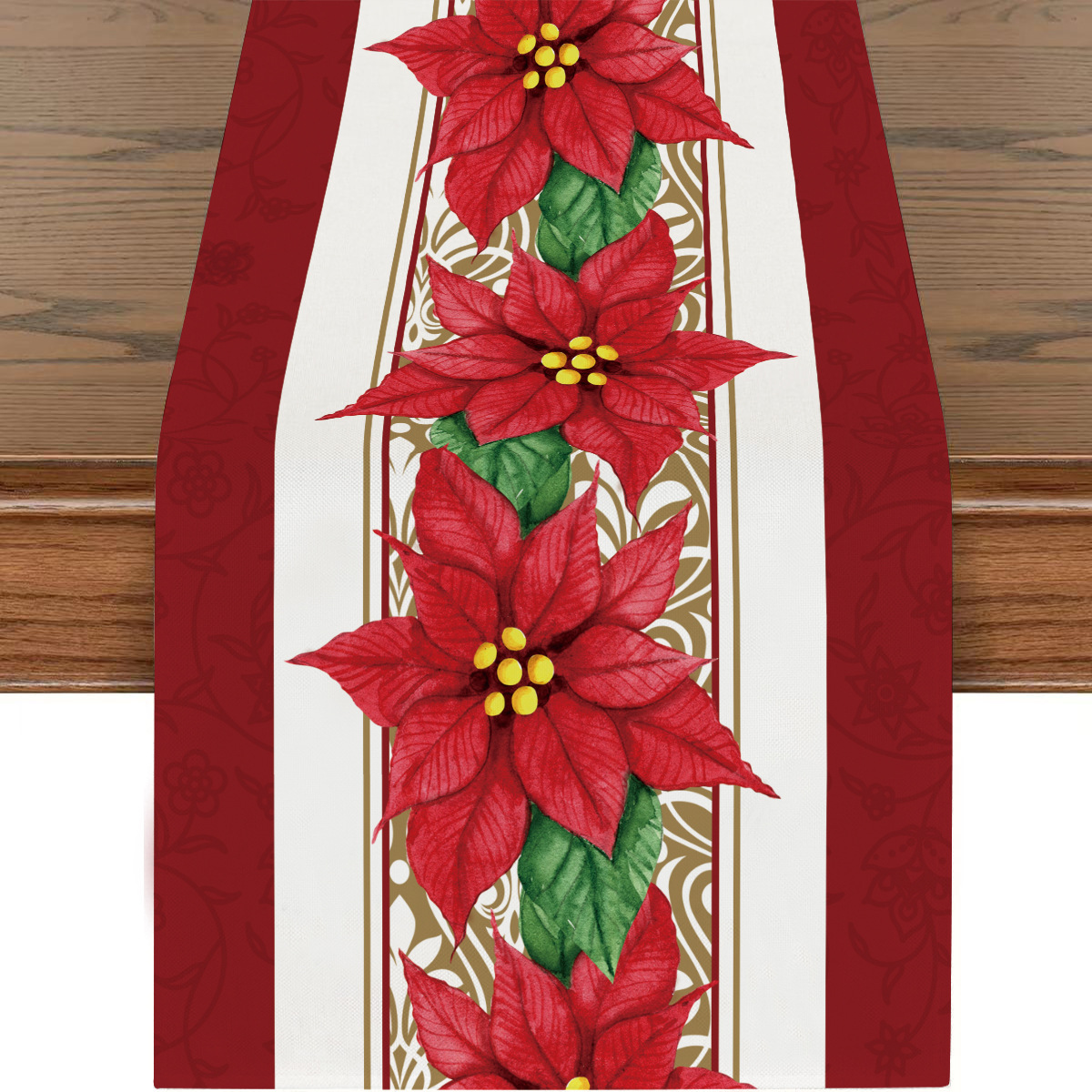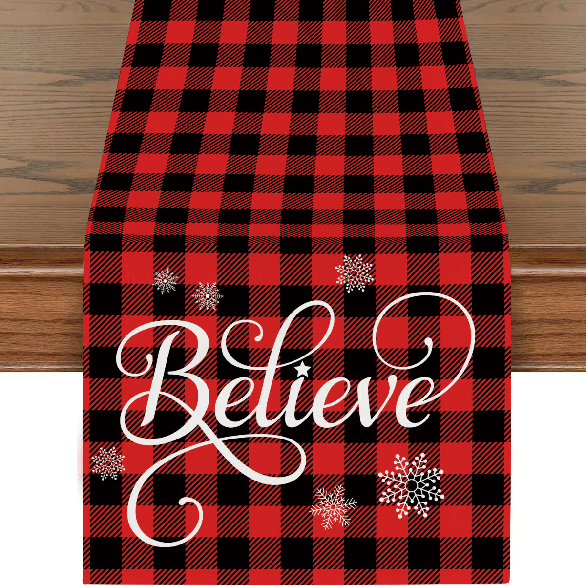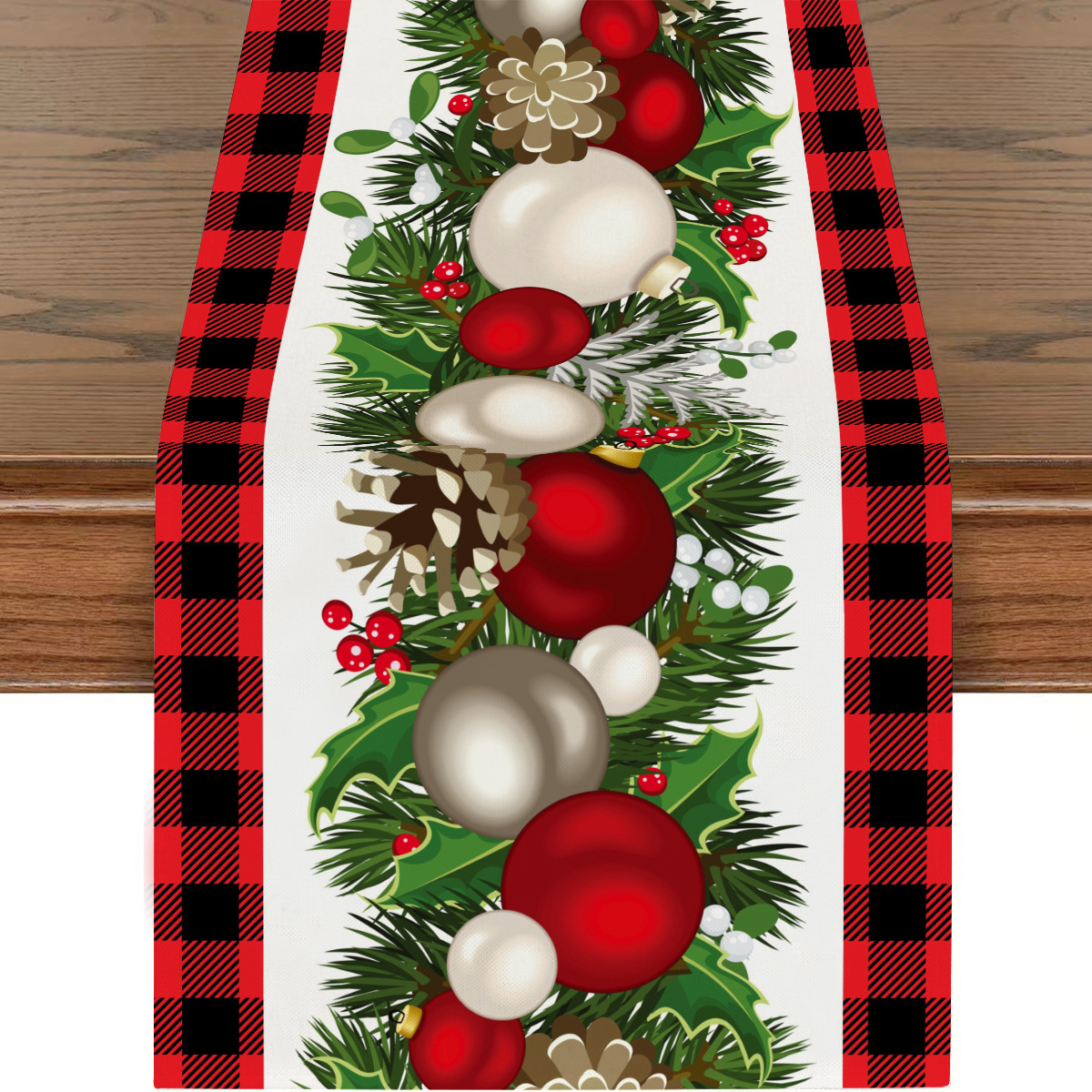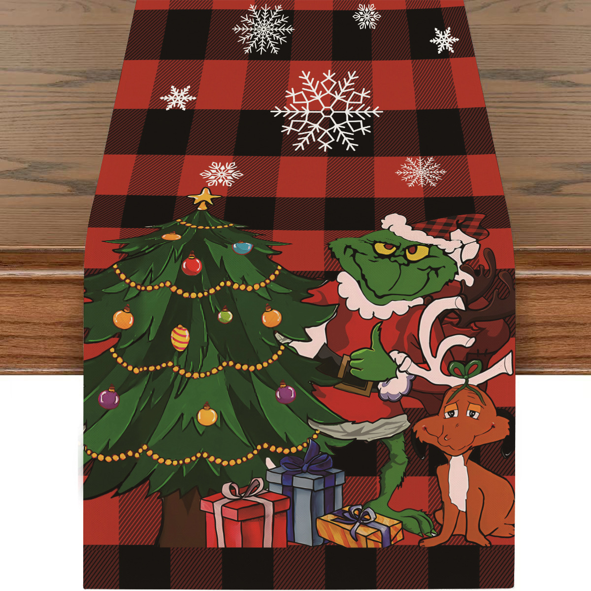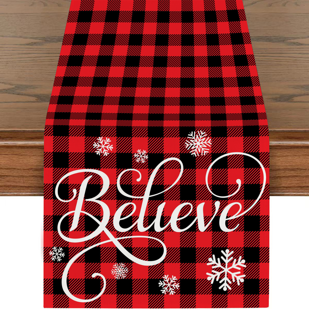 跨境爆款圣诞节亚麻印花桌旗西餐厅布置桌布北欧餐桌圣诞雪人桌旗