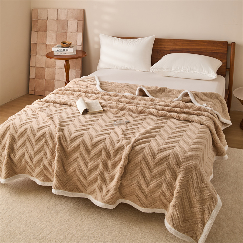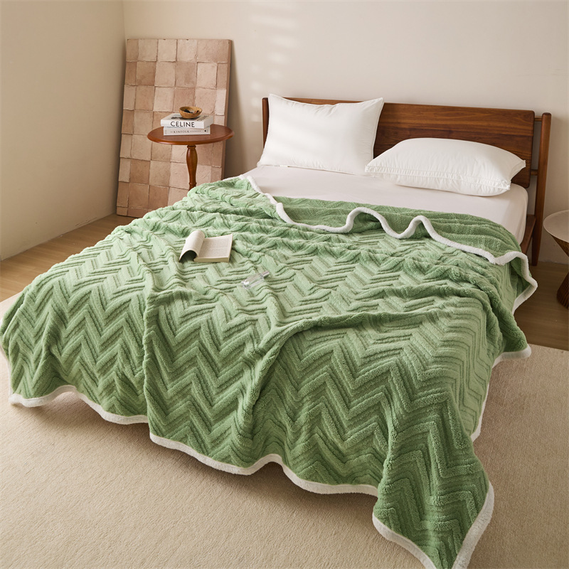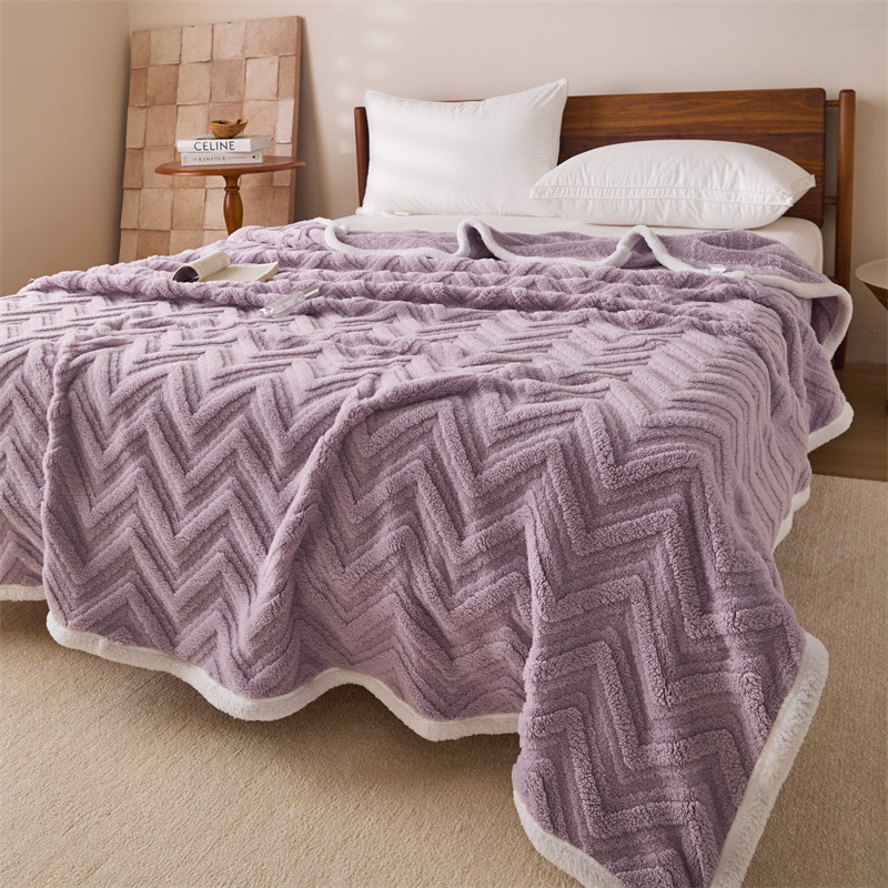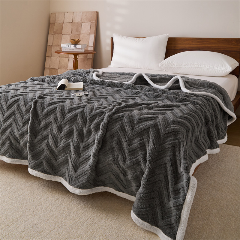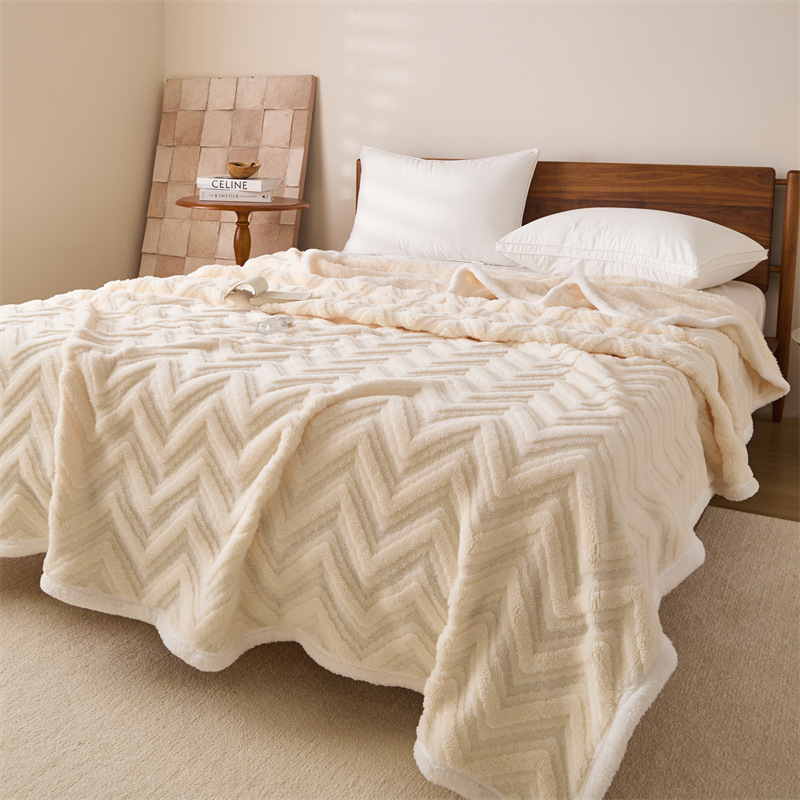 三层提花毛法莱绒休闲毯珊瑚绒盖毯子