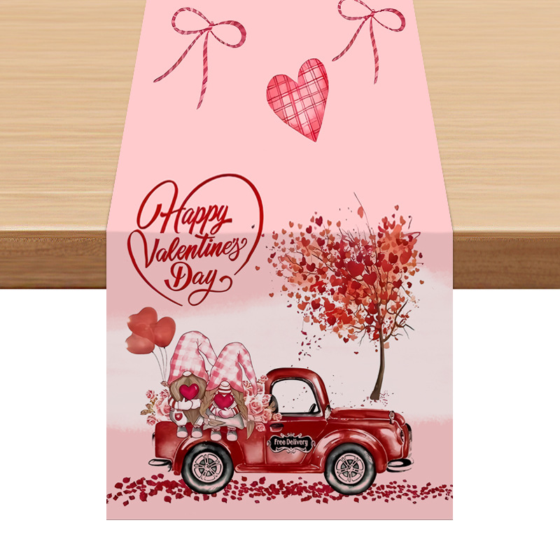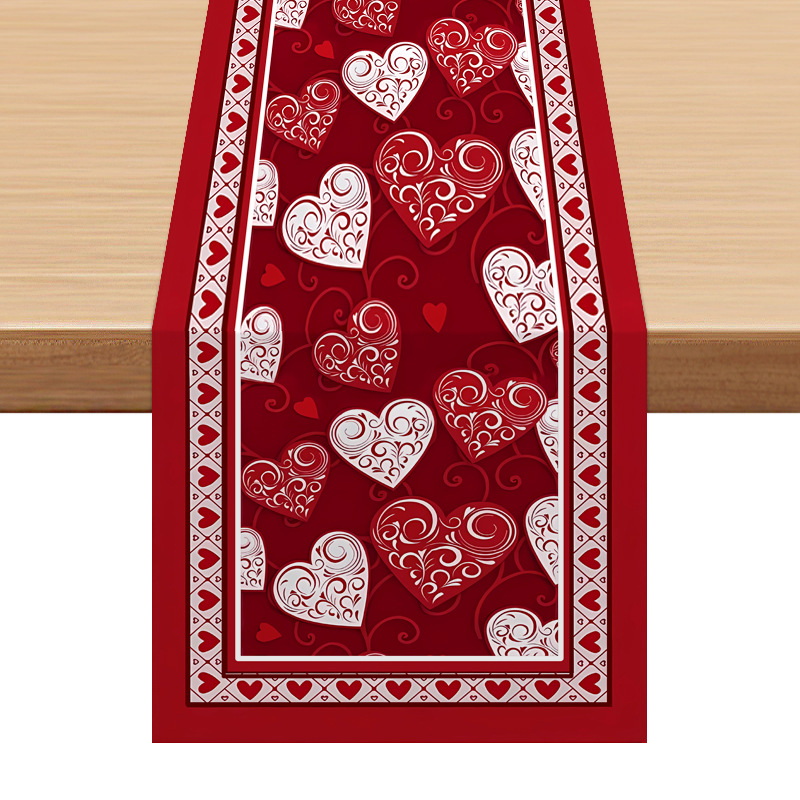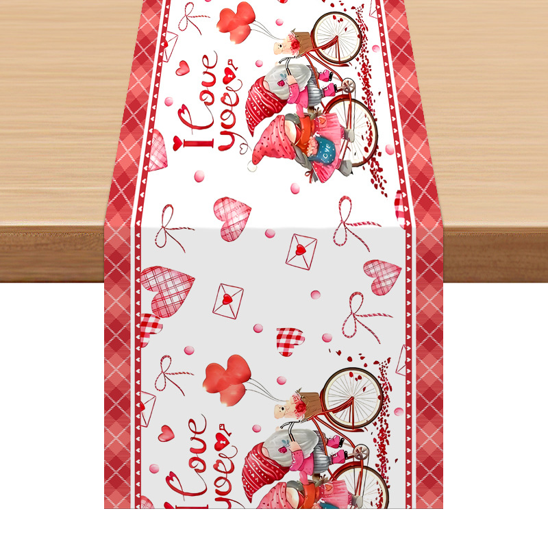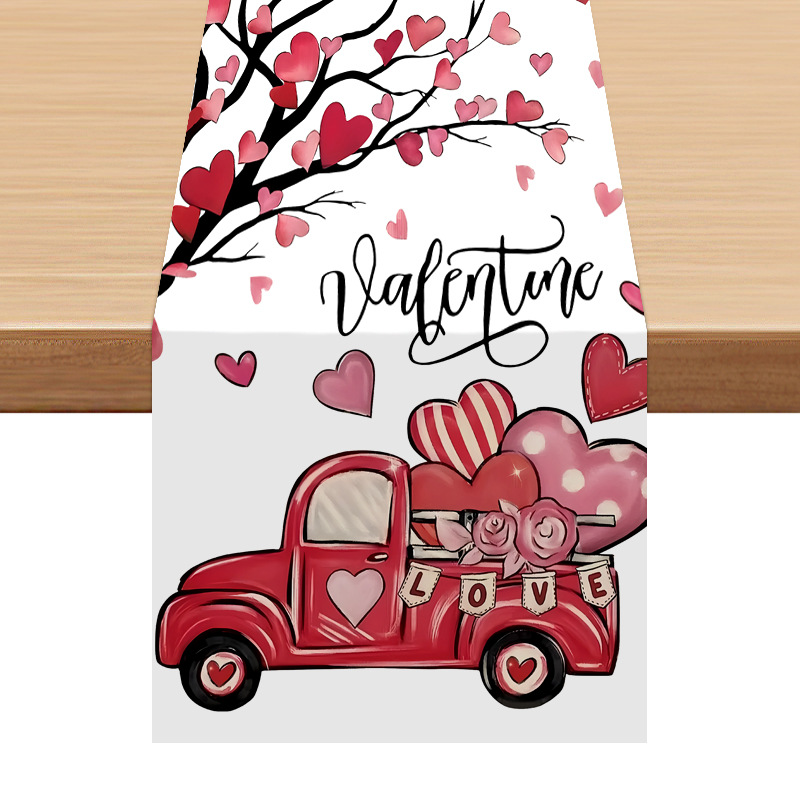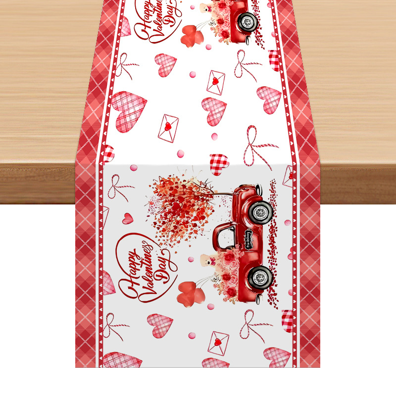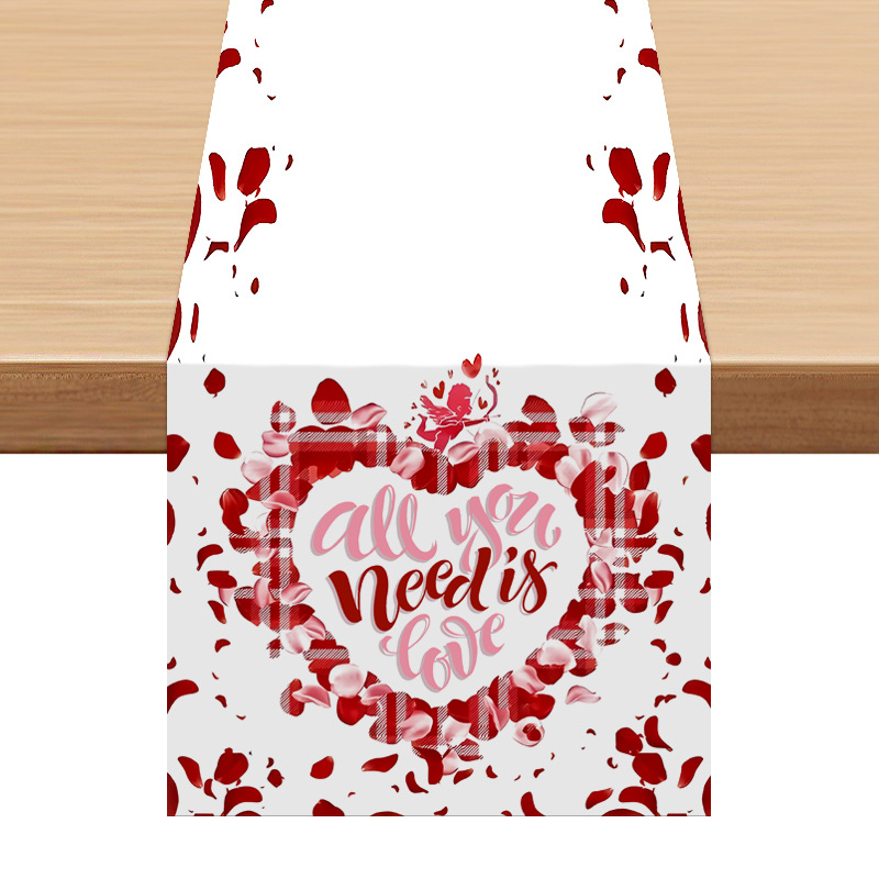 跨境定制情人节桌旗亚马逊红色印花桌布餐厅装饰氛围布置桌旗批发