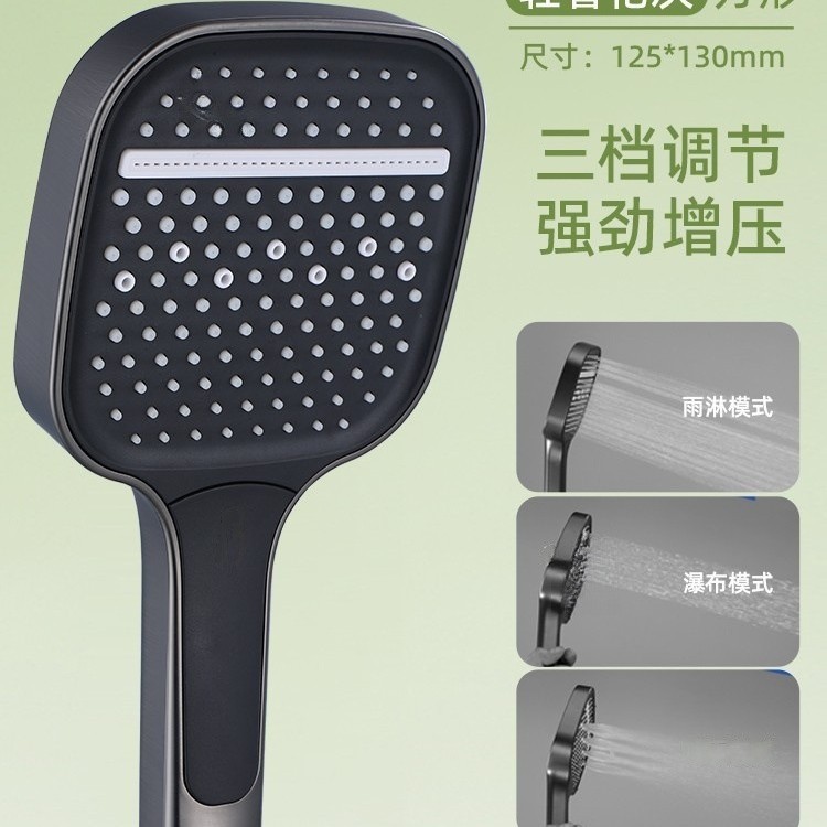 灰色方型长按键三档花洒