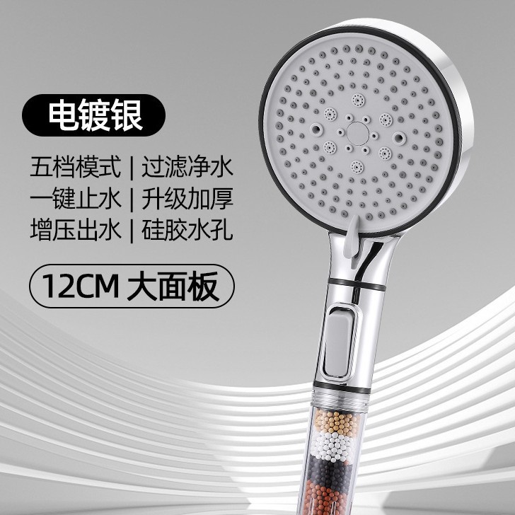 银色大面过滤五档花洒