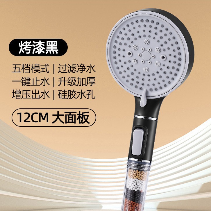 黑色大面过滤五档花洒