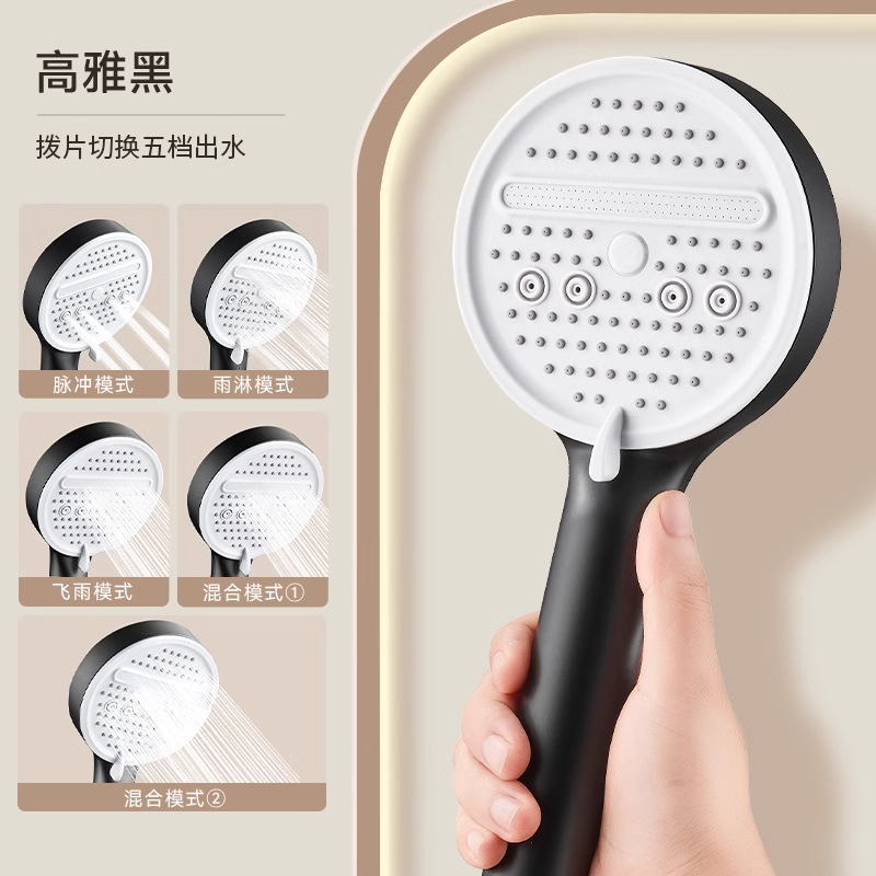 黑色瀑布防滑柄五档花洒