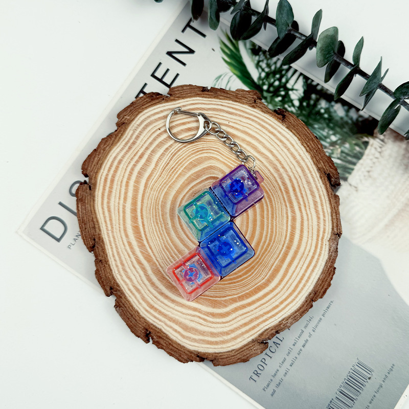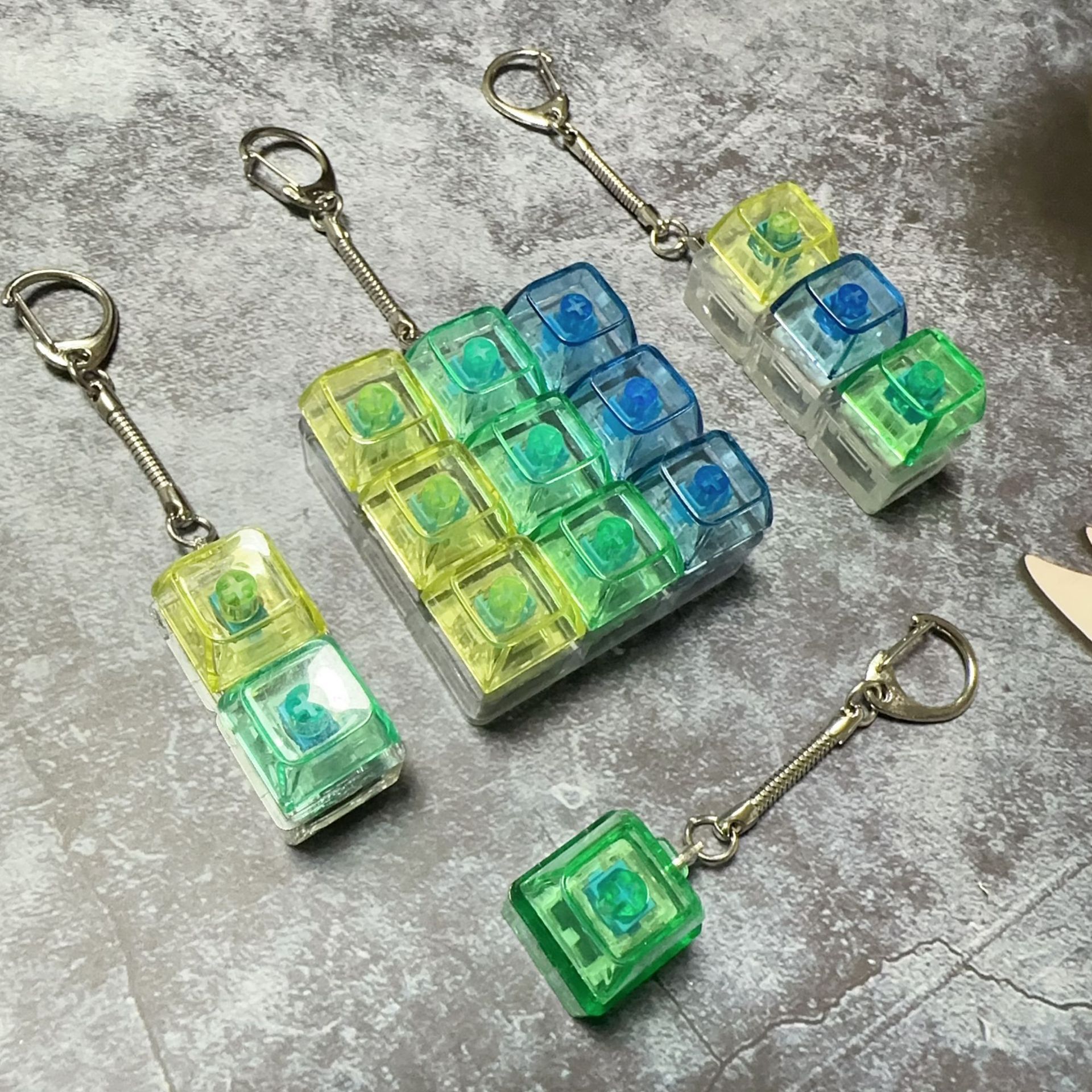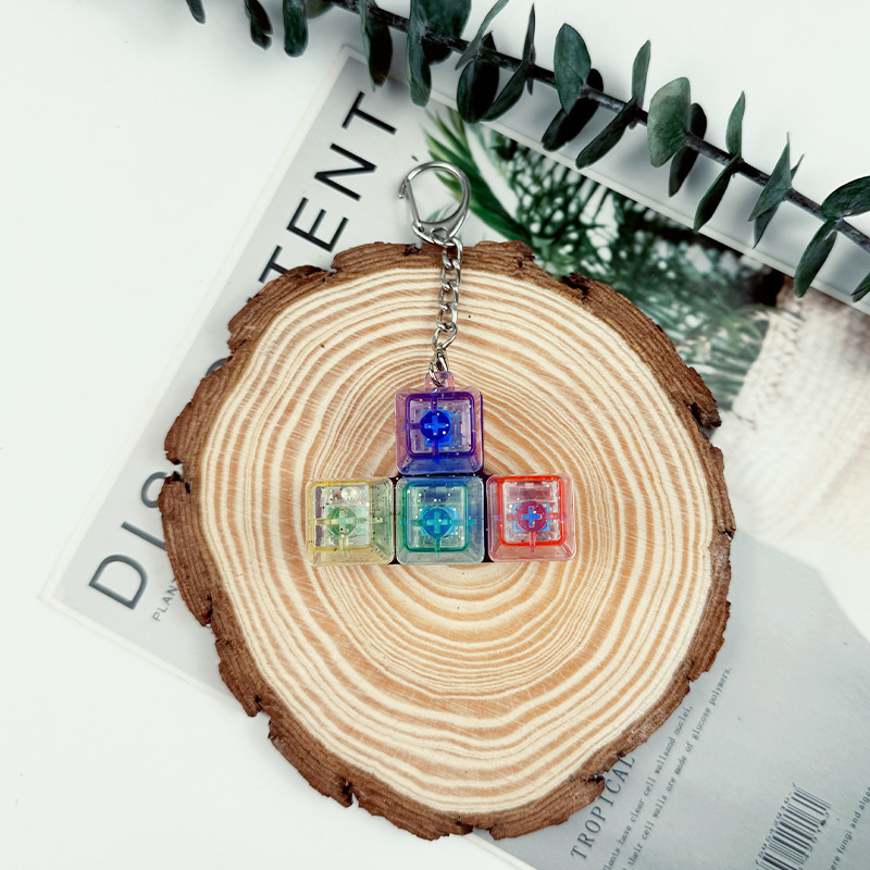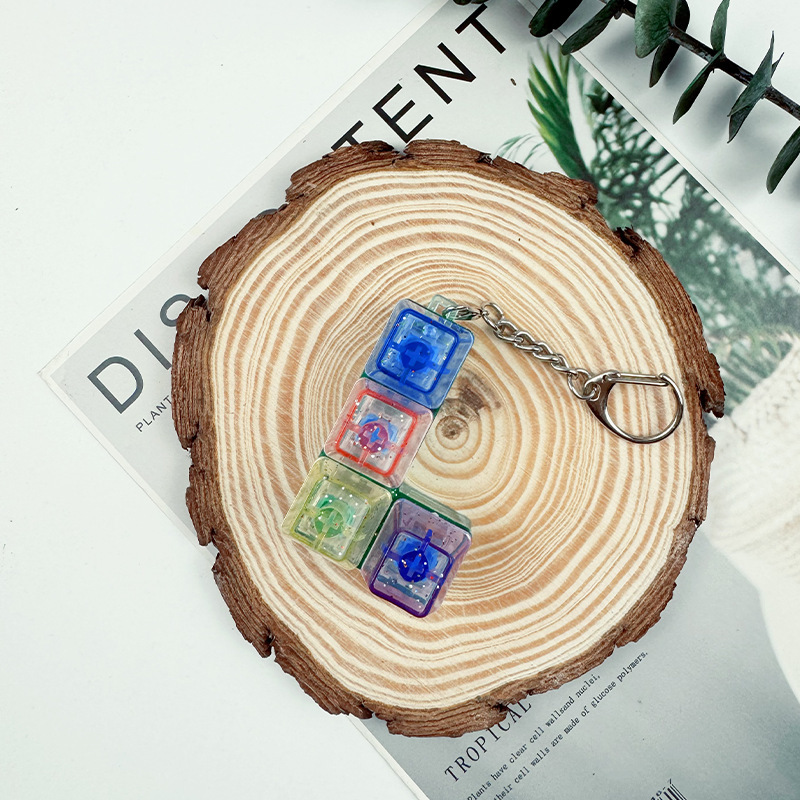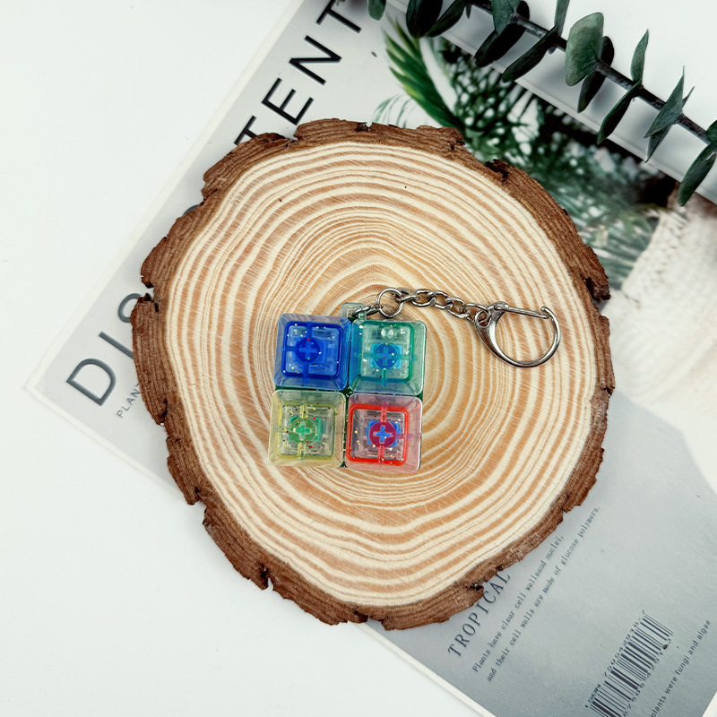 跨境4键减压按键试轴器钥匙扣挂件指尖按压解压发光玩具指尖按键