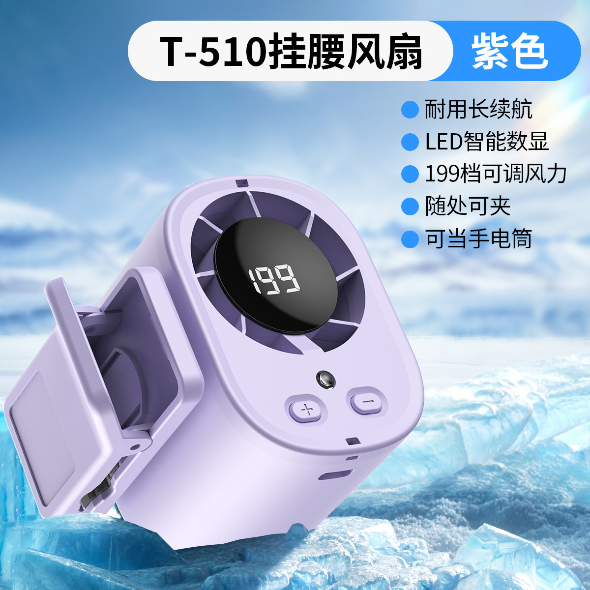 T510跨境新款挂腰风扇多功能充电款户外便携式usb挂脖静音小风扇