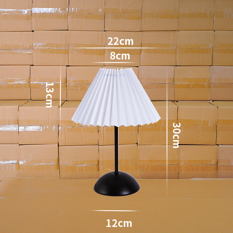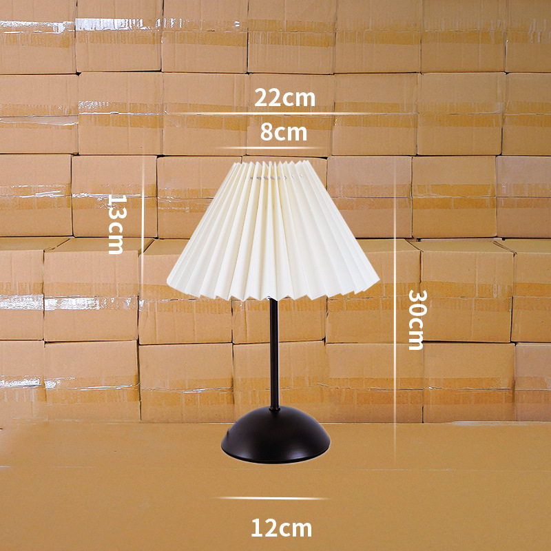 北欧式复古台灯美式金属民宿舍卧室睡眠床头灯百褶伞形小夜灯氛围