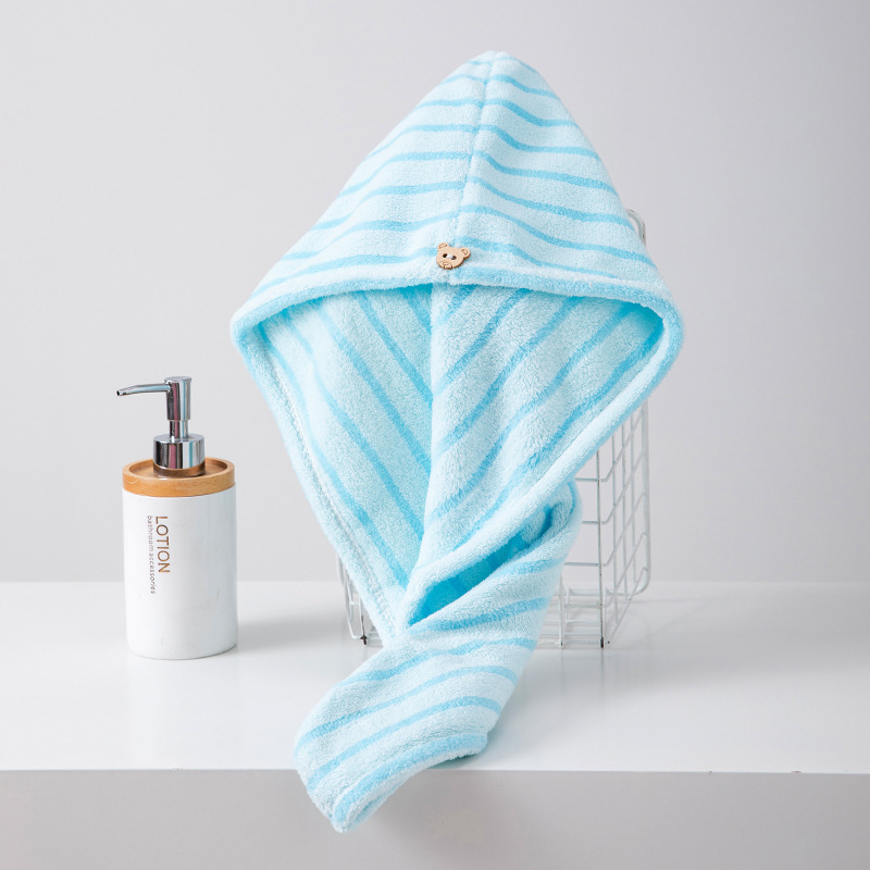 跨境专供卡通扣子干发帽女不掉毛吸水速干擦头发浴帽加厚包头发巾