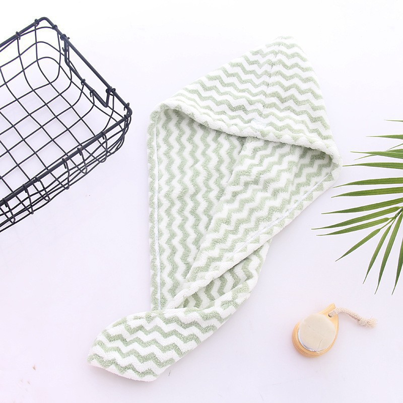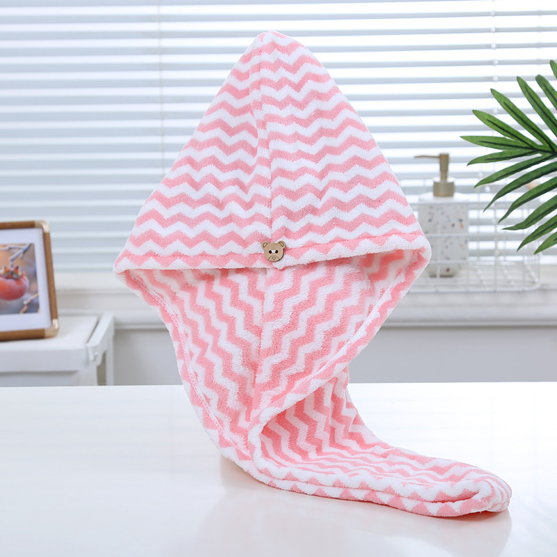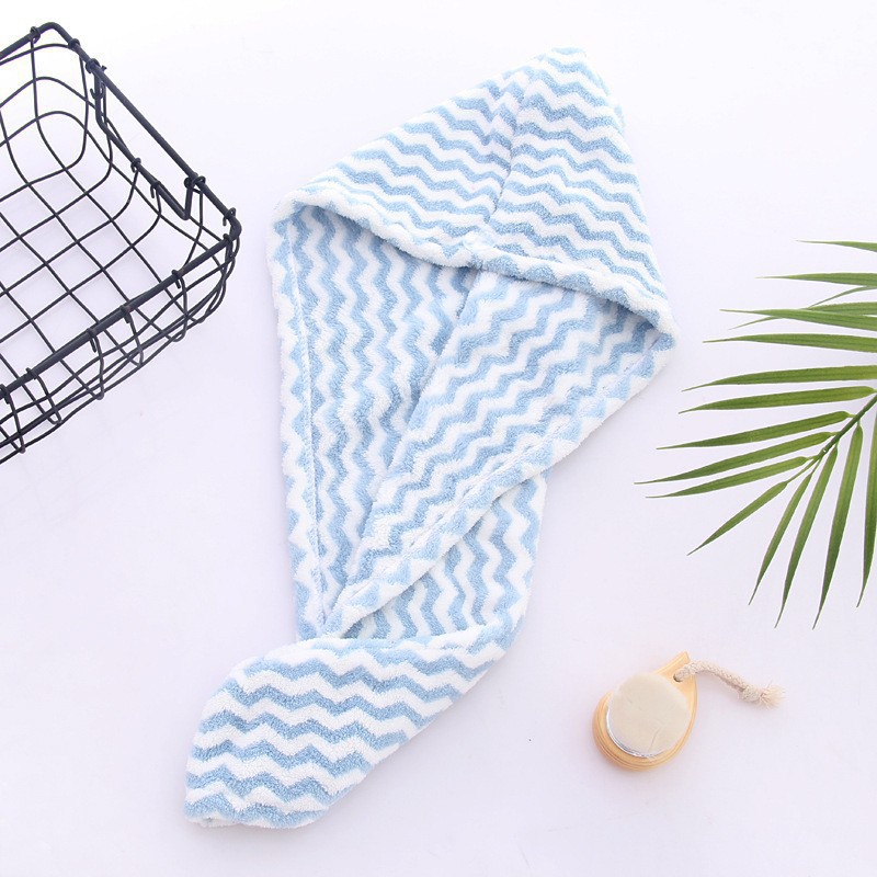 2026新款珊瑚绒干发帽条纹干发巾吸水浴帽包边擦头毛巾包头巾