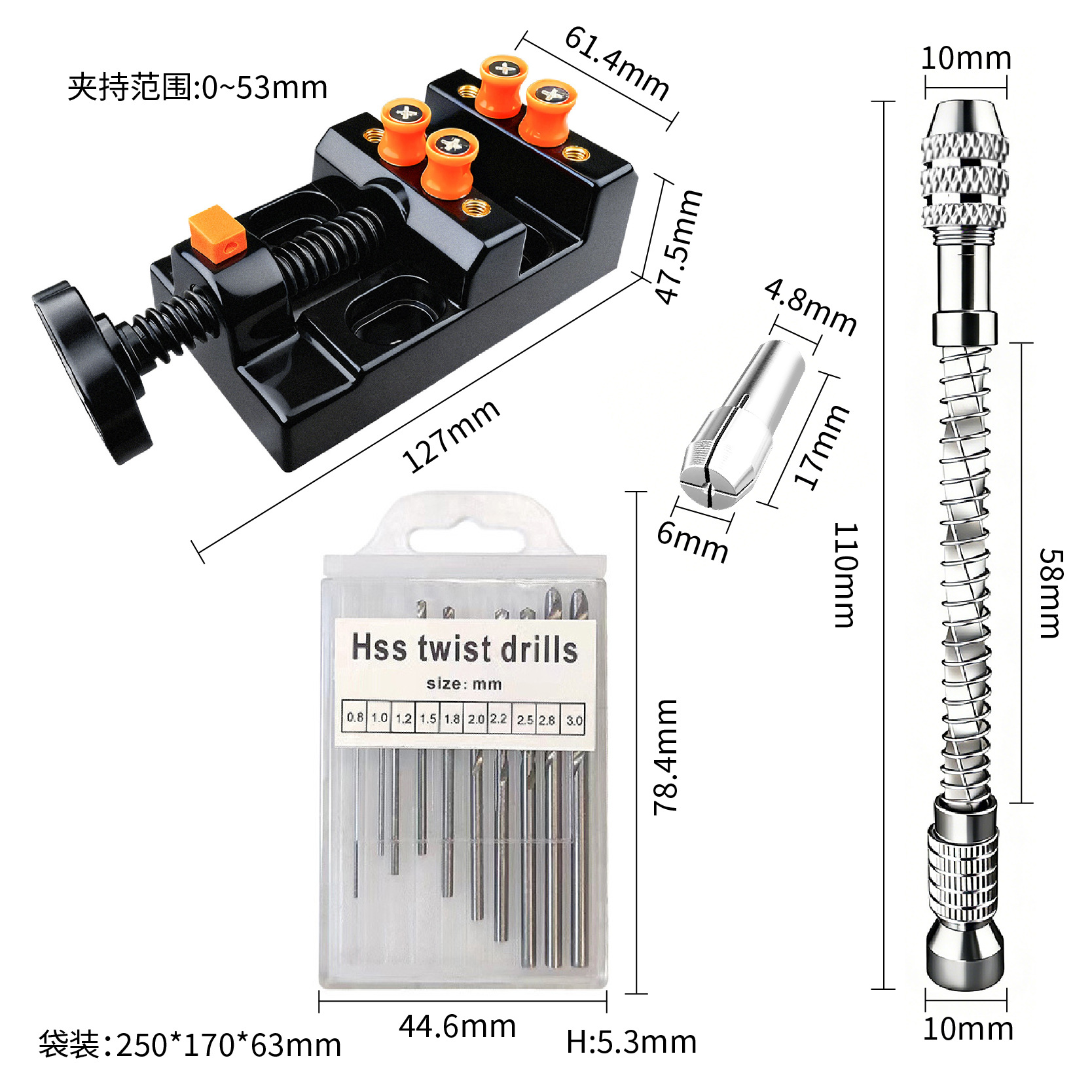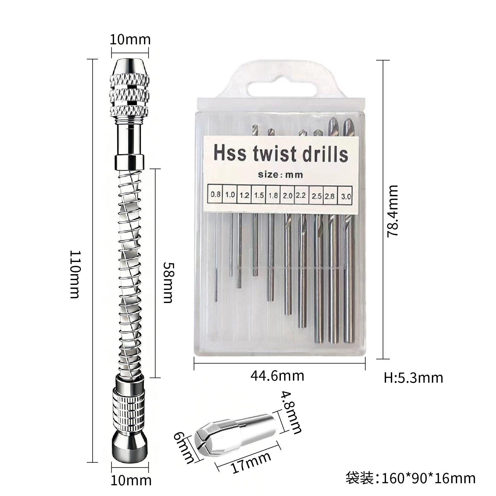 银色手捻钻+10pcs麻花钻[1.0-3.0 *2]袋装38g