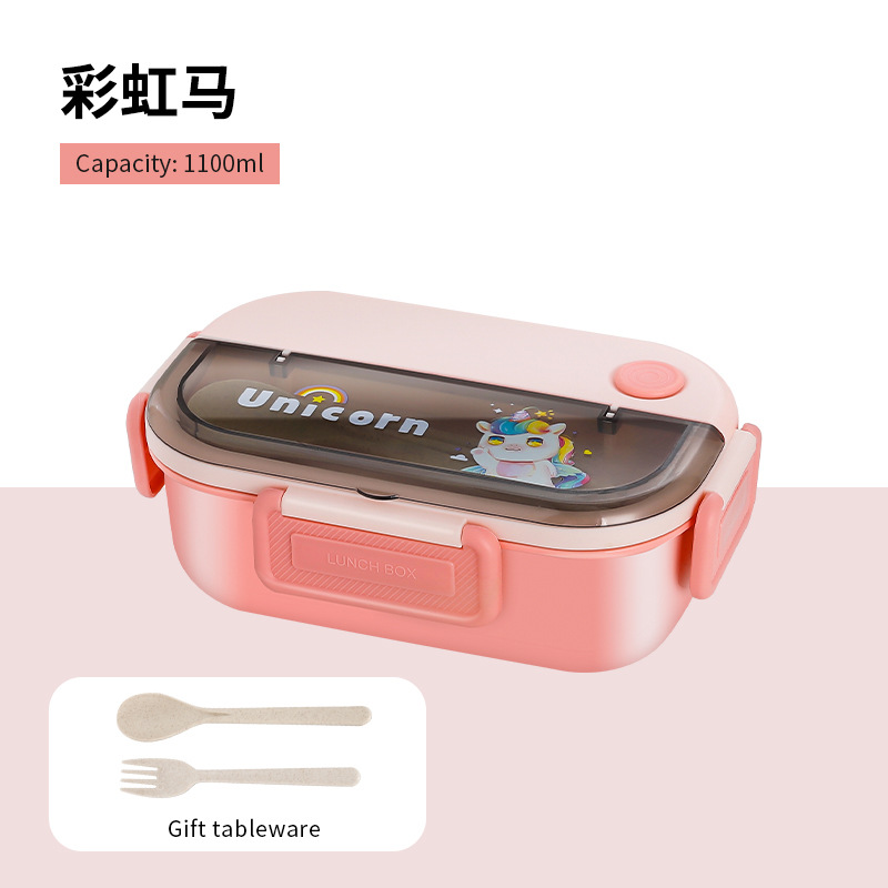 上班族可微波炉加热简约分格饭盒 学生便携午餐便当盒带餐具叉勺