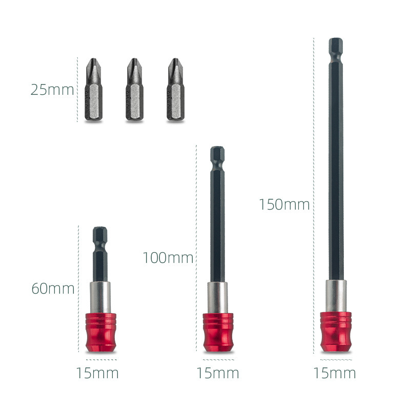 8pc【延长杆红(300mm+150mm+100mm+65mm)+PH2批头4个