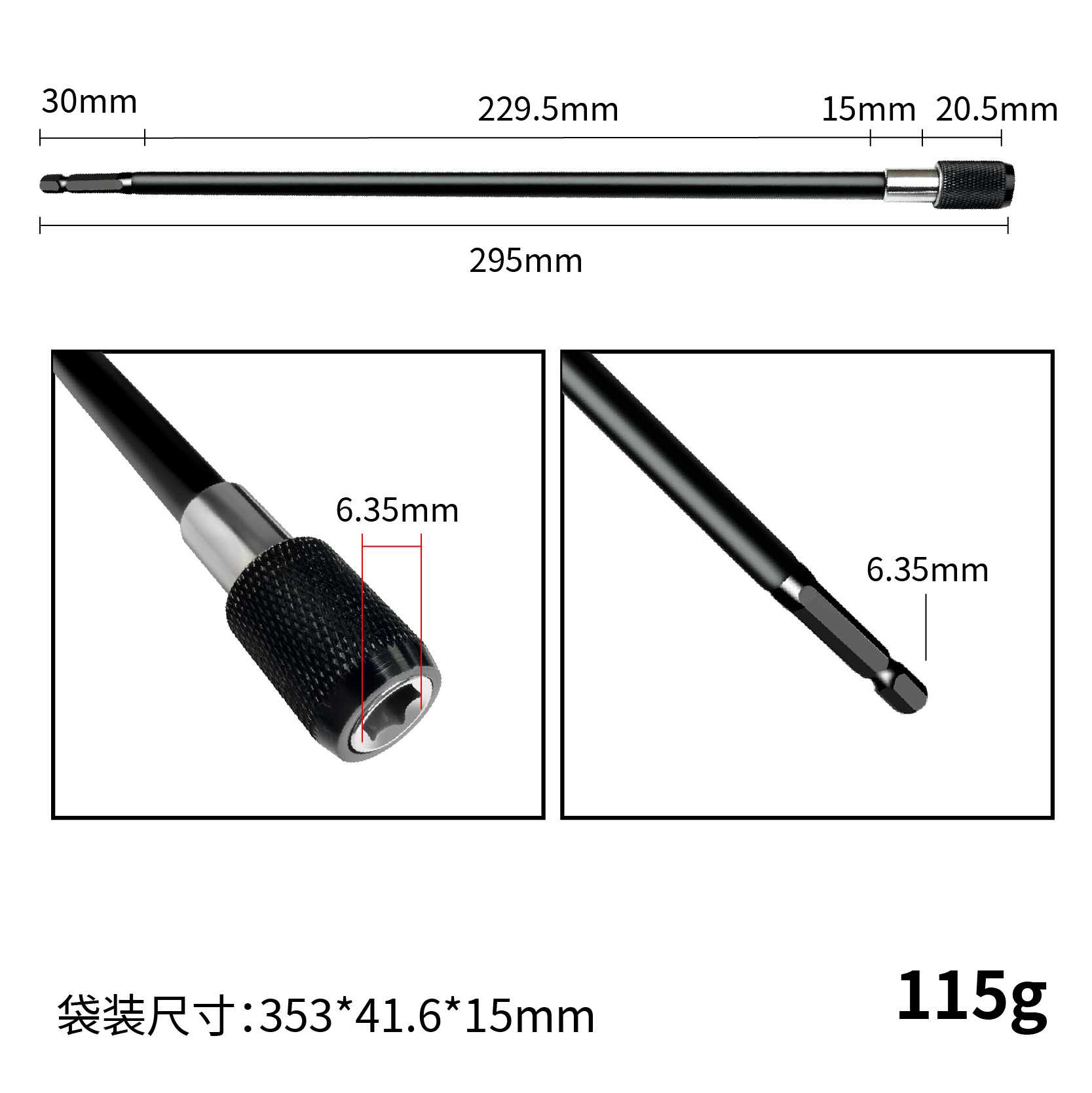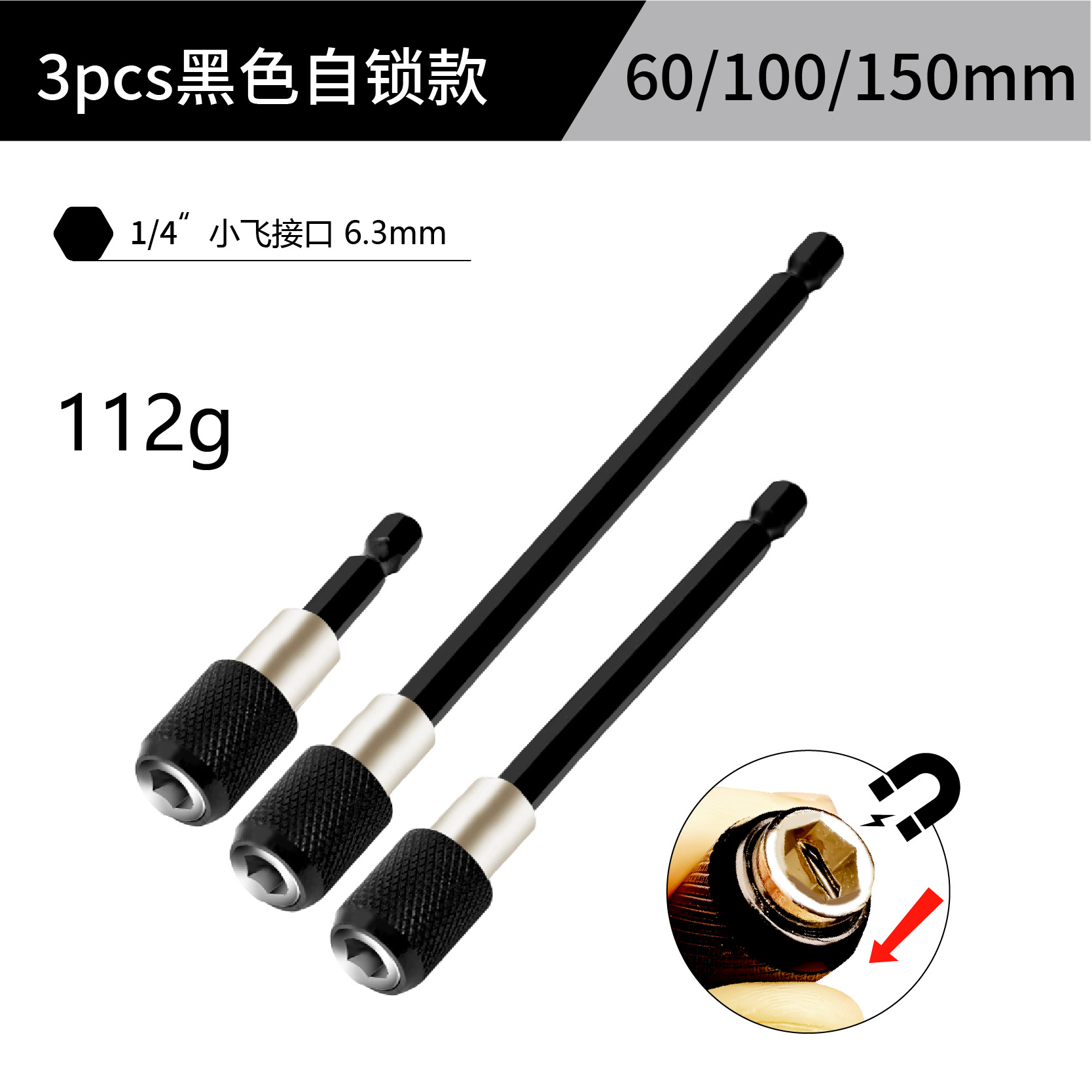 3pcs六角柄黑帽快脱自锁加长接杆电钻起子转换接杆批头连接杆