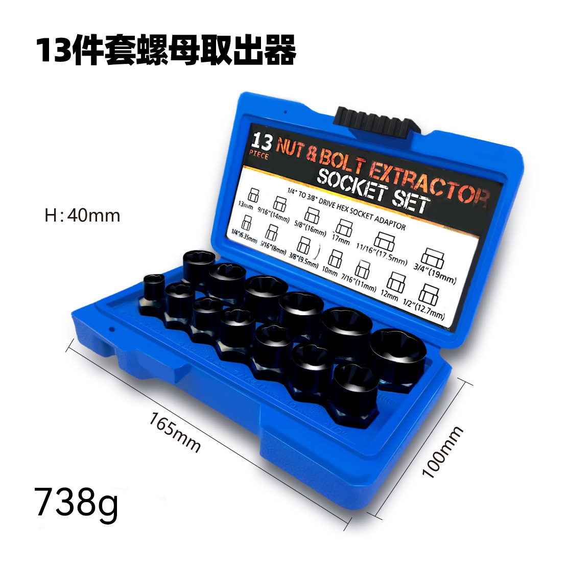 A1287-13pcs蓝盒亮黑螺母取出器盒装738g