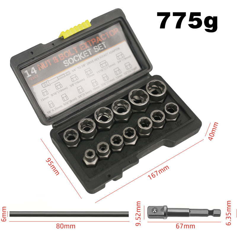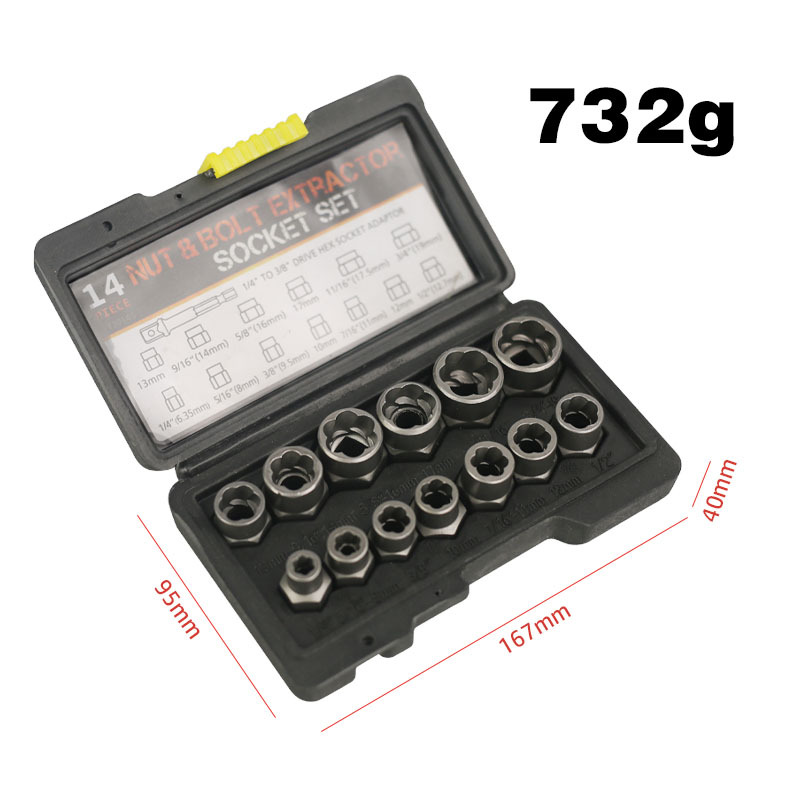 A1989-13pc螺母取出器喷砂套装塑盒装黄扣732g