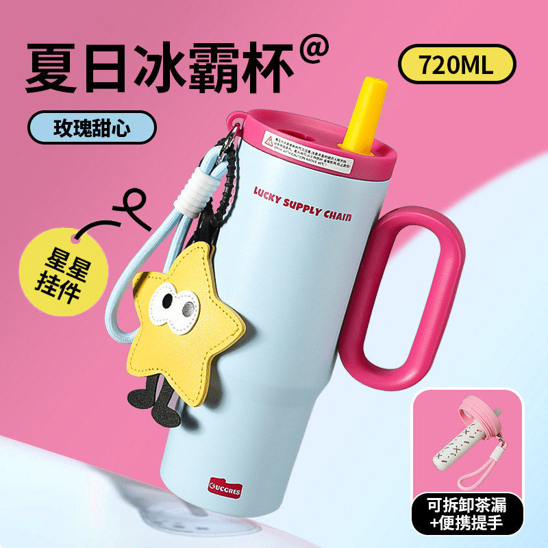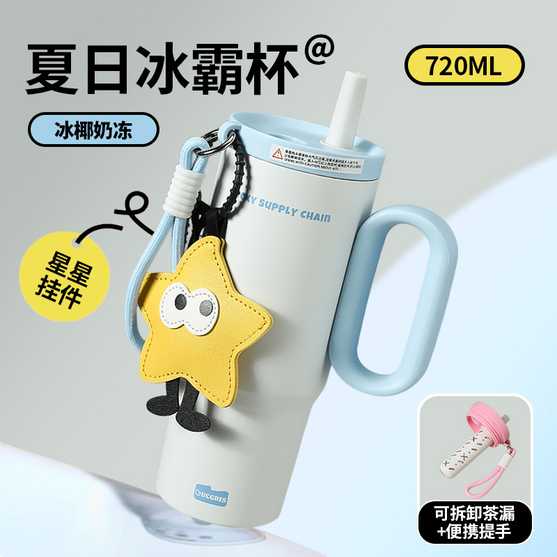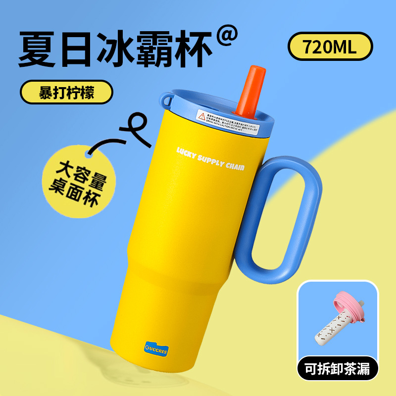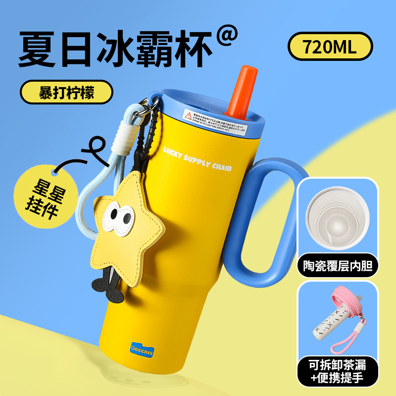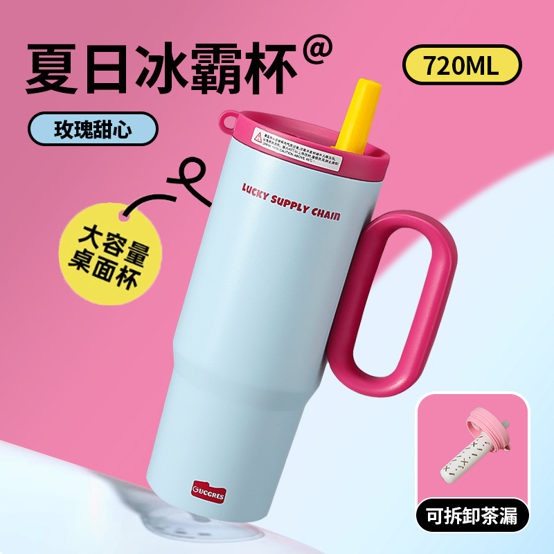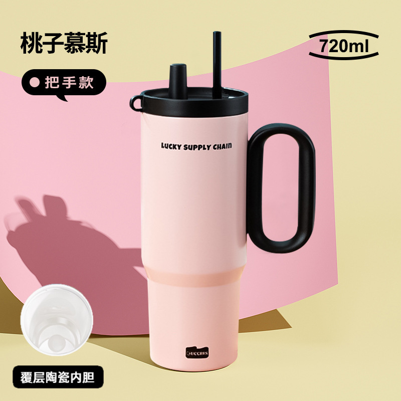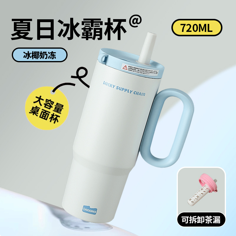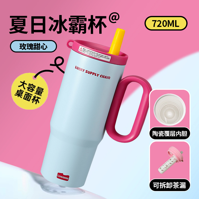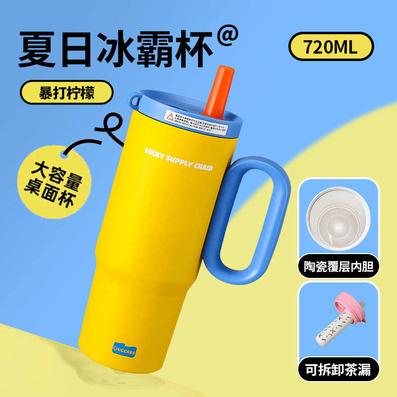 GUCGRES新款高颜值保温杯大容量简约吸管杯陶瓷内胆保冷316冰霸杯