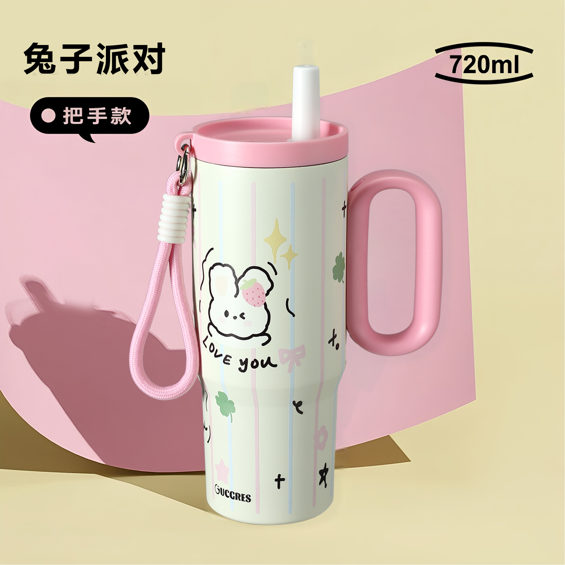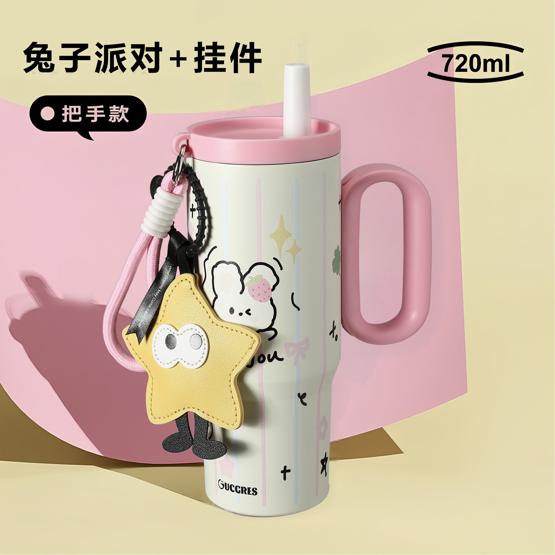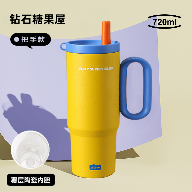 GUCGRES巨无霸吸管保温杯大容量水杯女高颜值吨吨水壶陶瓷冰霸杯