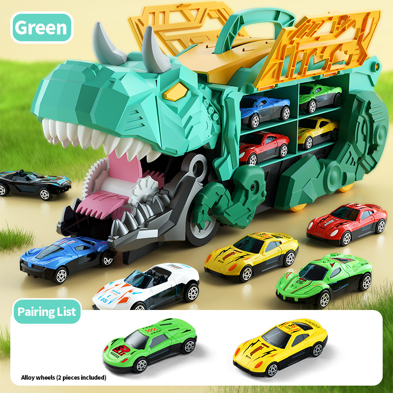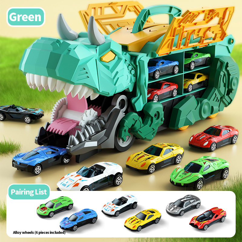 【英文彩盒】绿色恐龙吞食车+6合金车