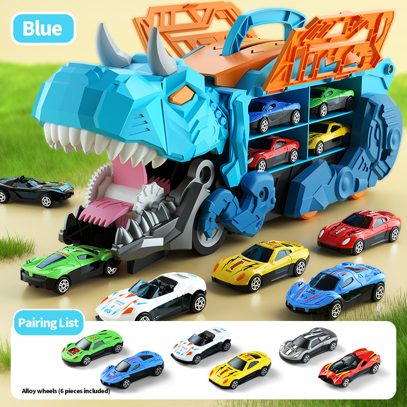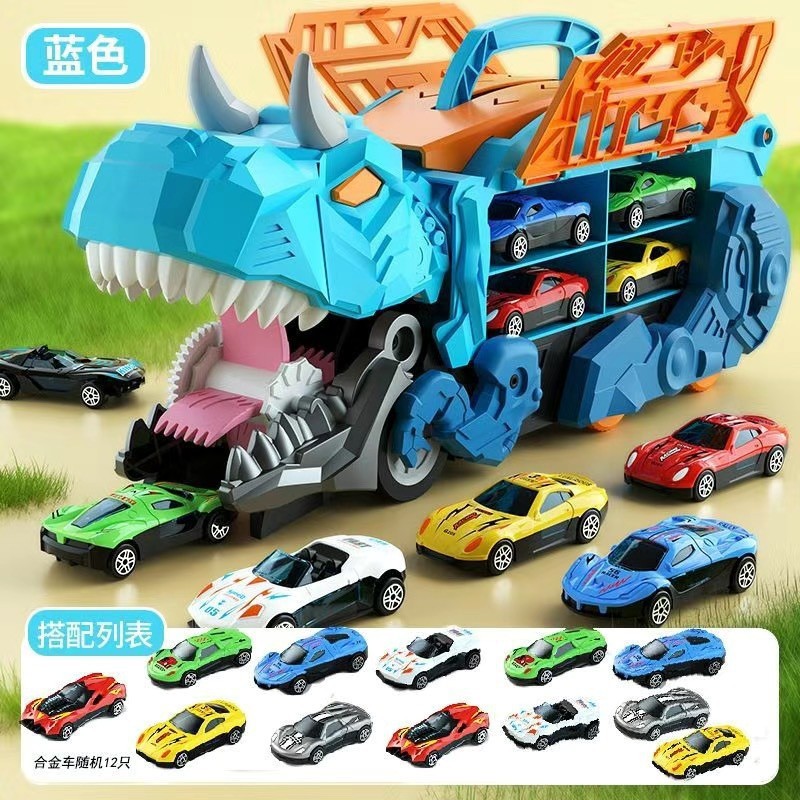 【英文彩盒】蓝色恐龙吞食车+12合金车