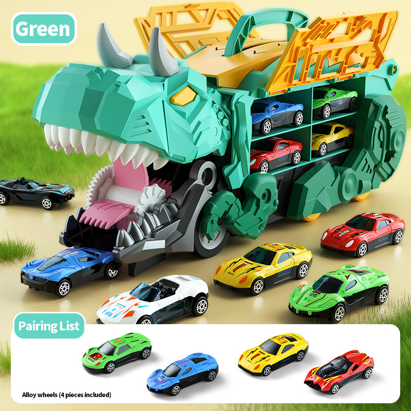 【英文彩盒】绿色恐龙吞食车+4合金车