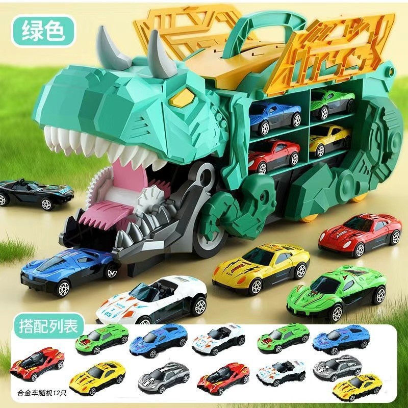 【英文彩盒】绿色恐龙吞食车+12合金车