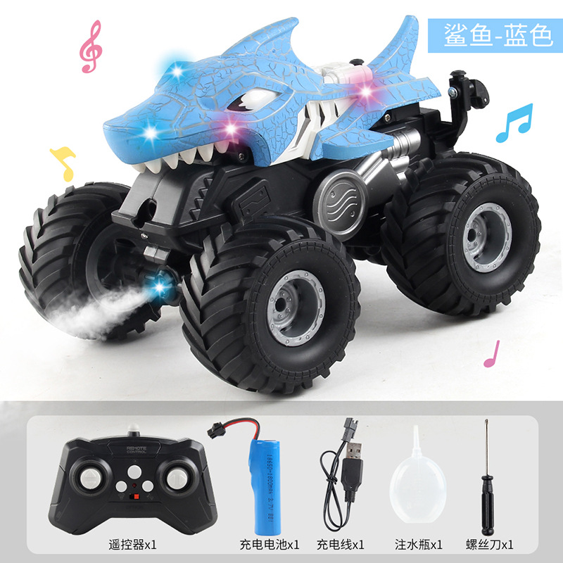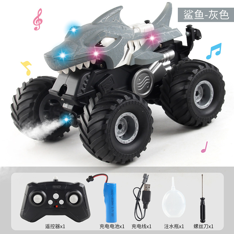 跨境2.4G遥控喷雾特技摇摆车 360度旋转灯光音乐电动鲨鱼遥控车