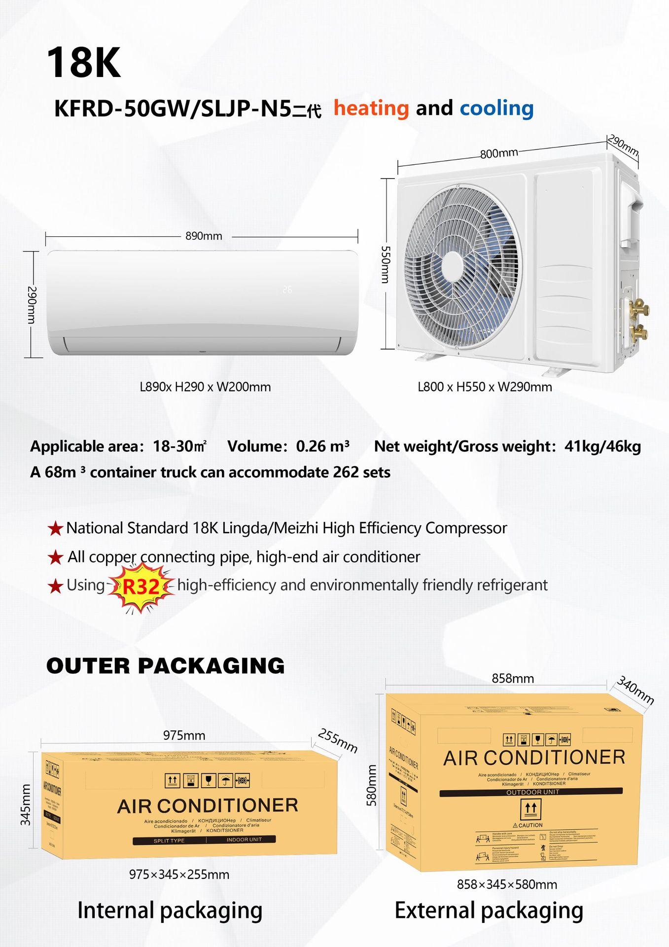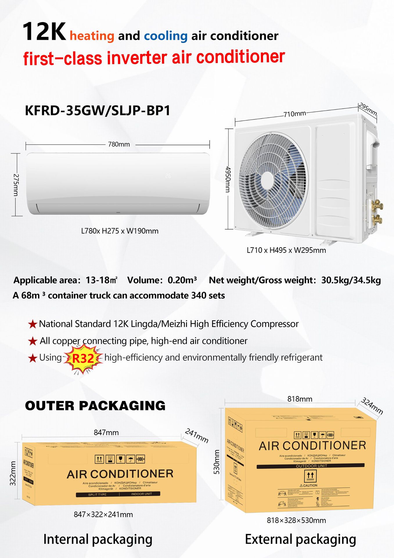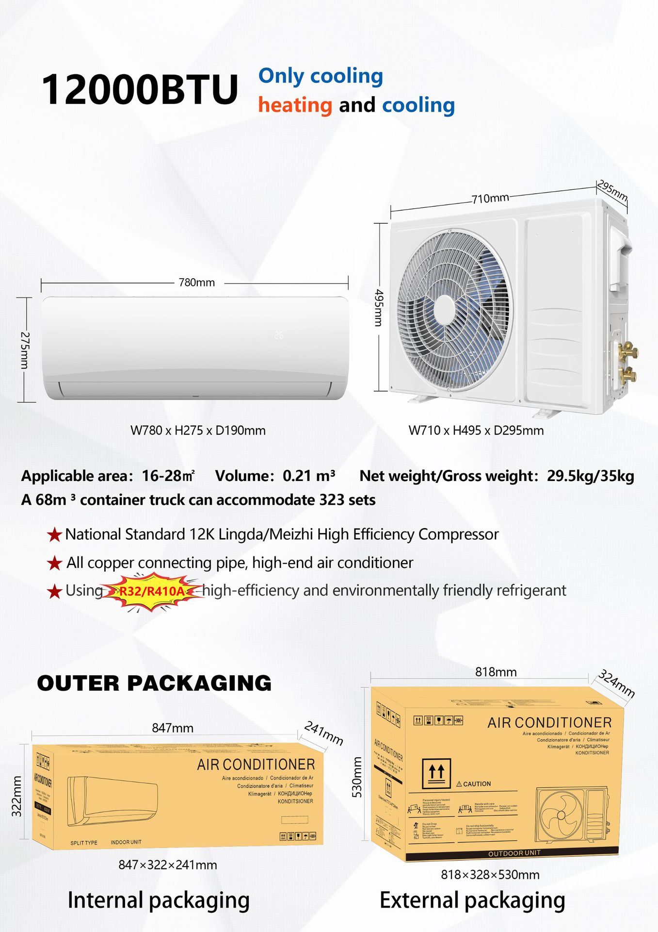 外贸出口空调9000/12000/18000/24000BTU1/1.5/2/3匹单冷/变频