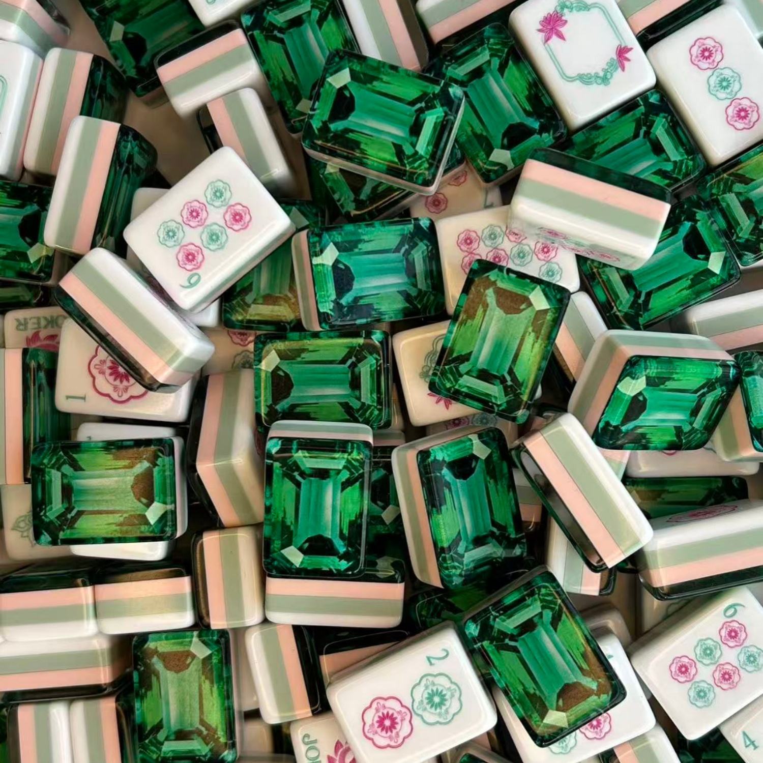 绿钻石亚克力美国麻将牌 家用送礼收纳袋套装手搓牌高档水晶麻
