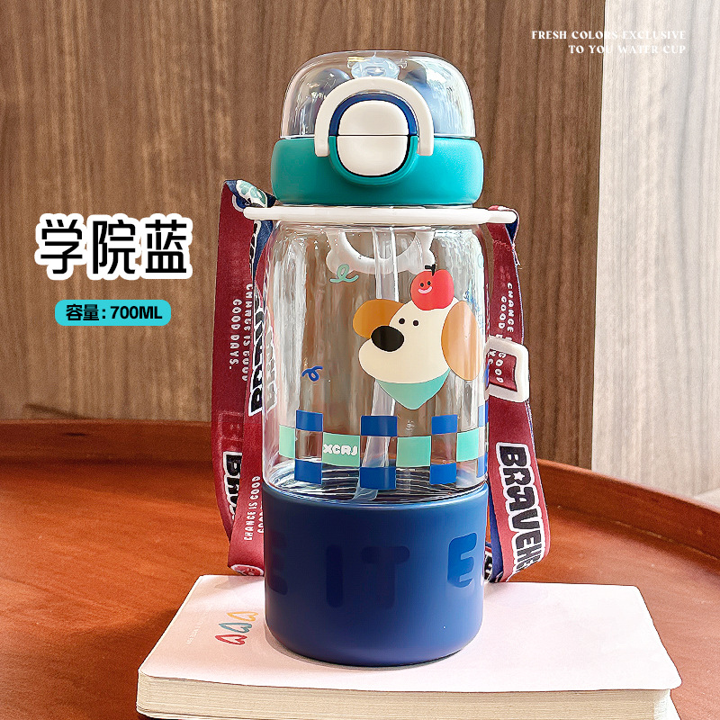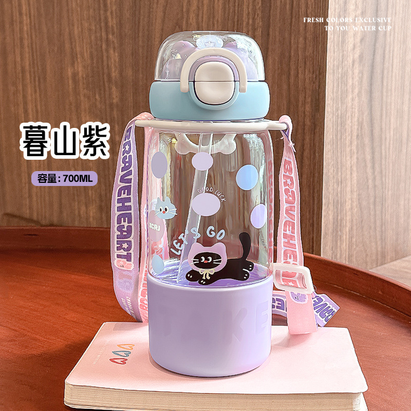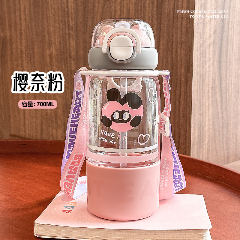 儿童可爱双饮卡通吸管塑料杯杯大容量便携网红学生水杯批发