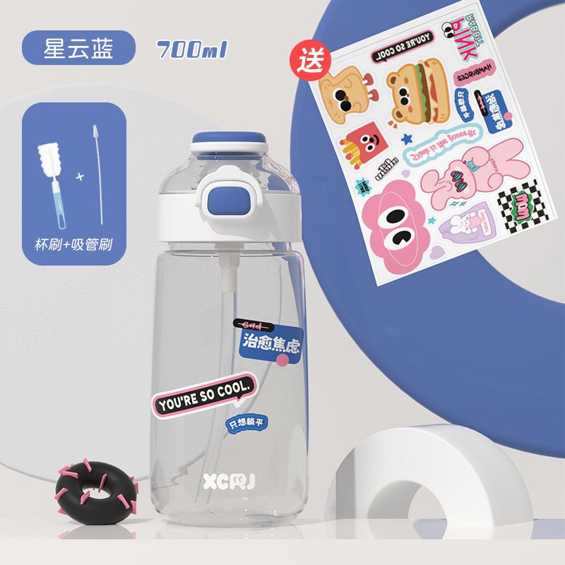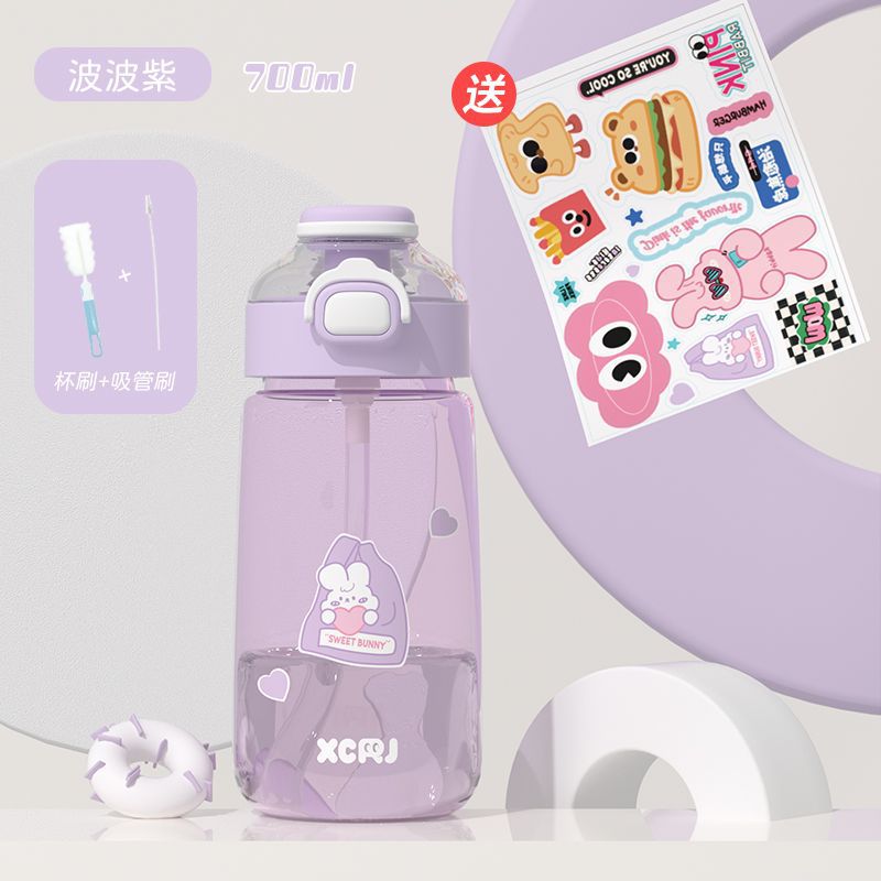 新款双饮网红爆款儿童学生吸管塑料杯高颜值便携学生随手杯女运动