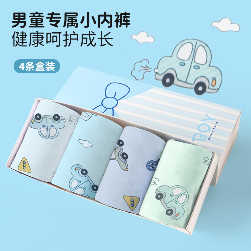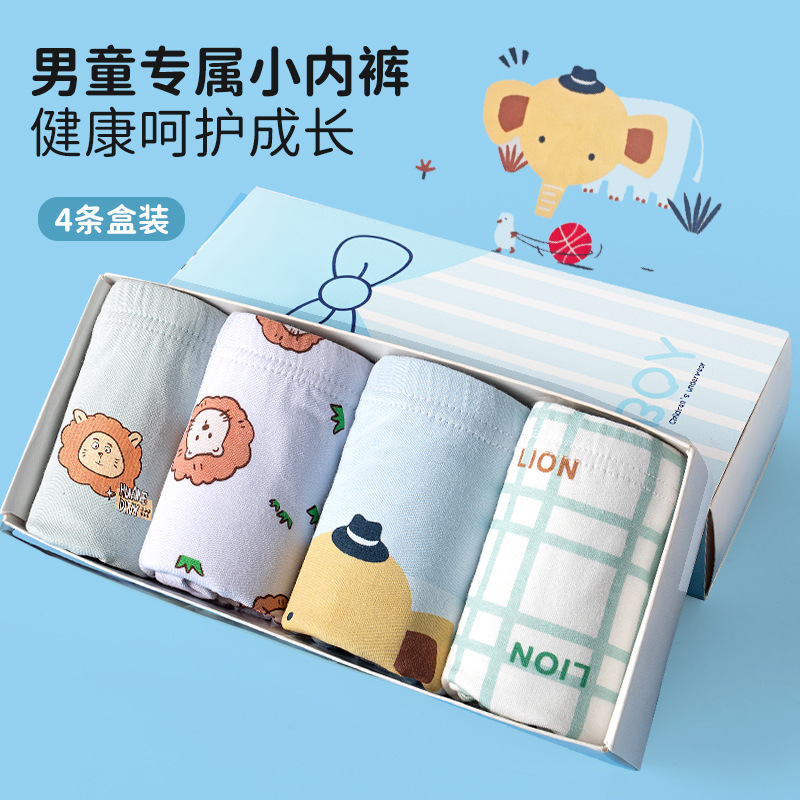 盒装儿童内裤男孩纯棉a类棉男童宝宝平角短裤四角裤不夹屁屁