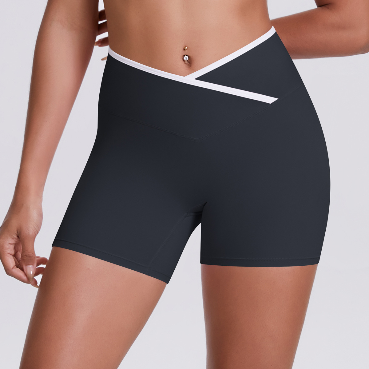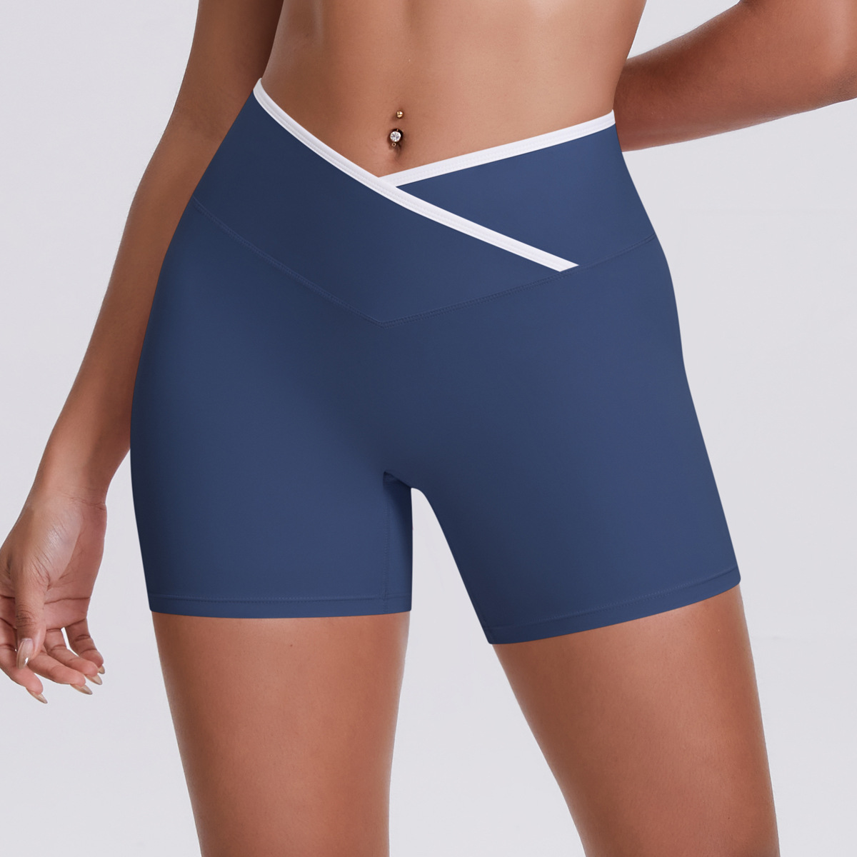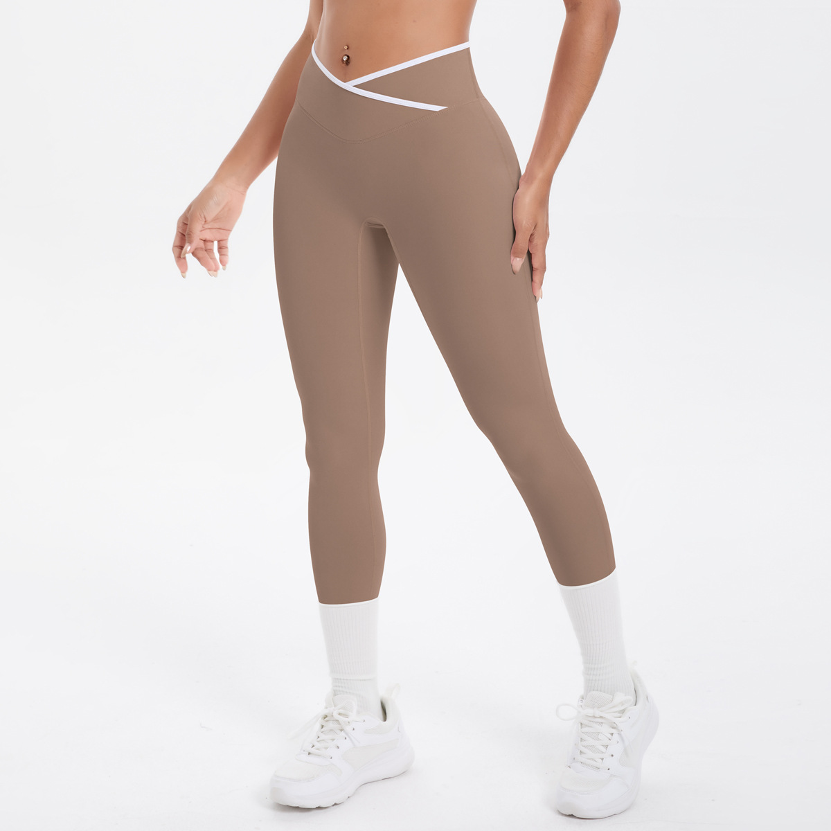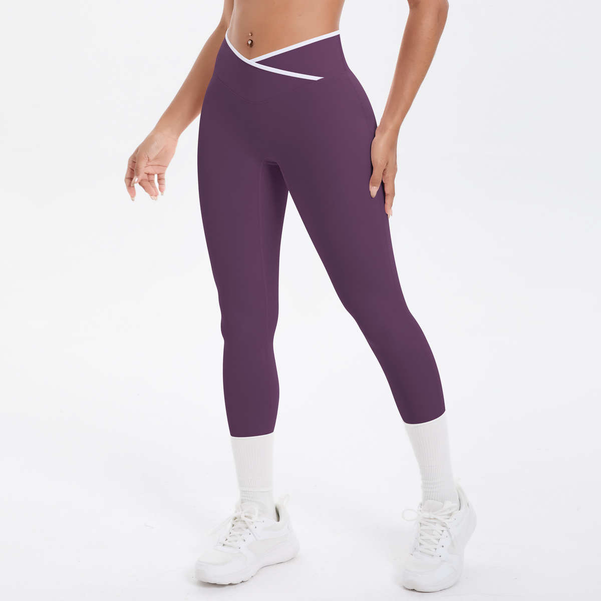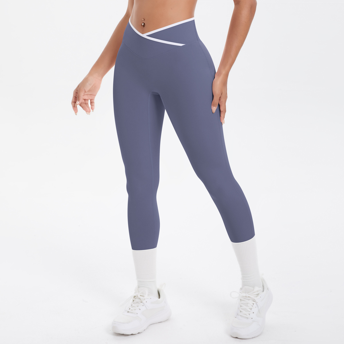 跨境新款撞色交叉紧身磨毛高弹瑜伽服套装跑步健身透气训练五件套