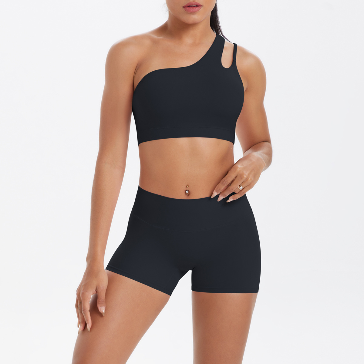 7114单肩文胸+7101短裤套装-黑色