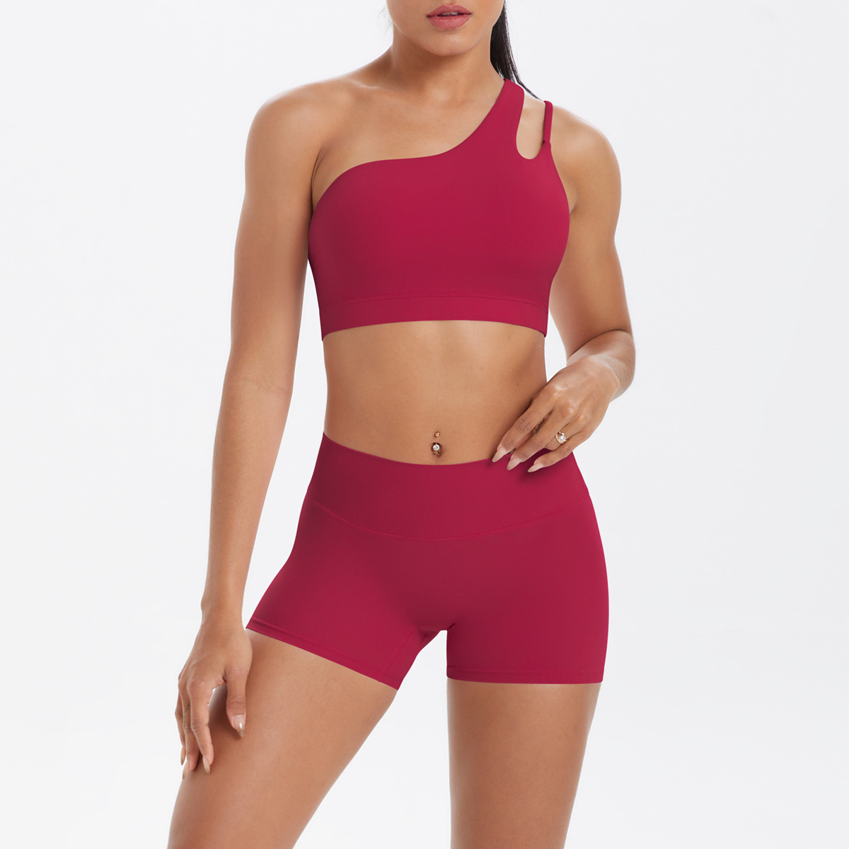 7114单肩文胸+7101短裤套装-胭脂红
