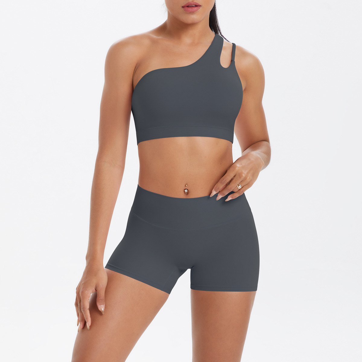 7114单肩文胸+7101短裤套装-石墨灰