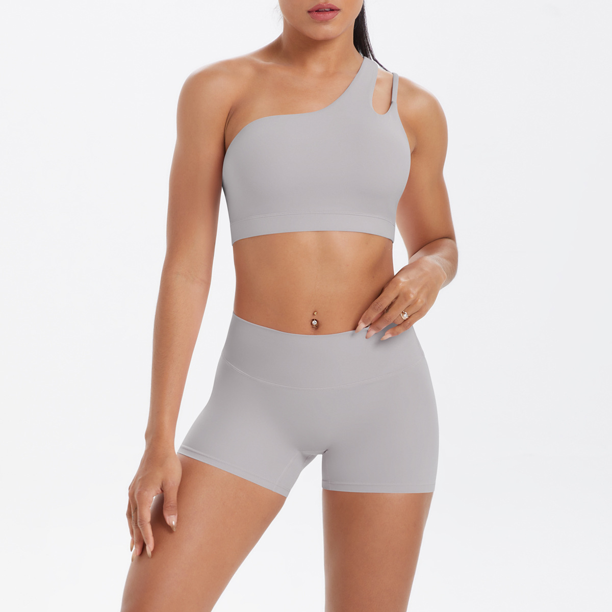 7114单肩文胸+7101短裤套装-霜灰色
