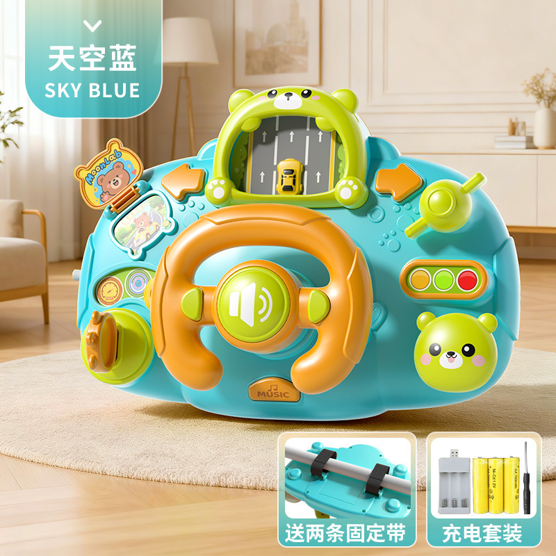 2025新款儿童萌熊方向盘驾驶台玩具宝宝婴儿车副驾驶模拟驾车遛娃